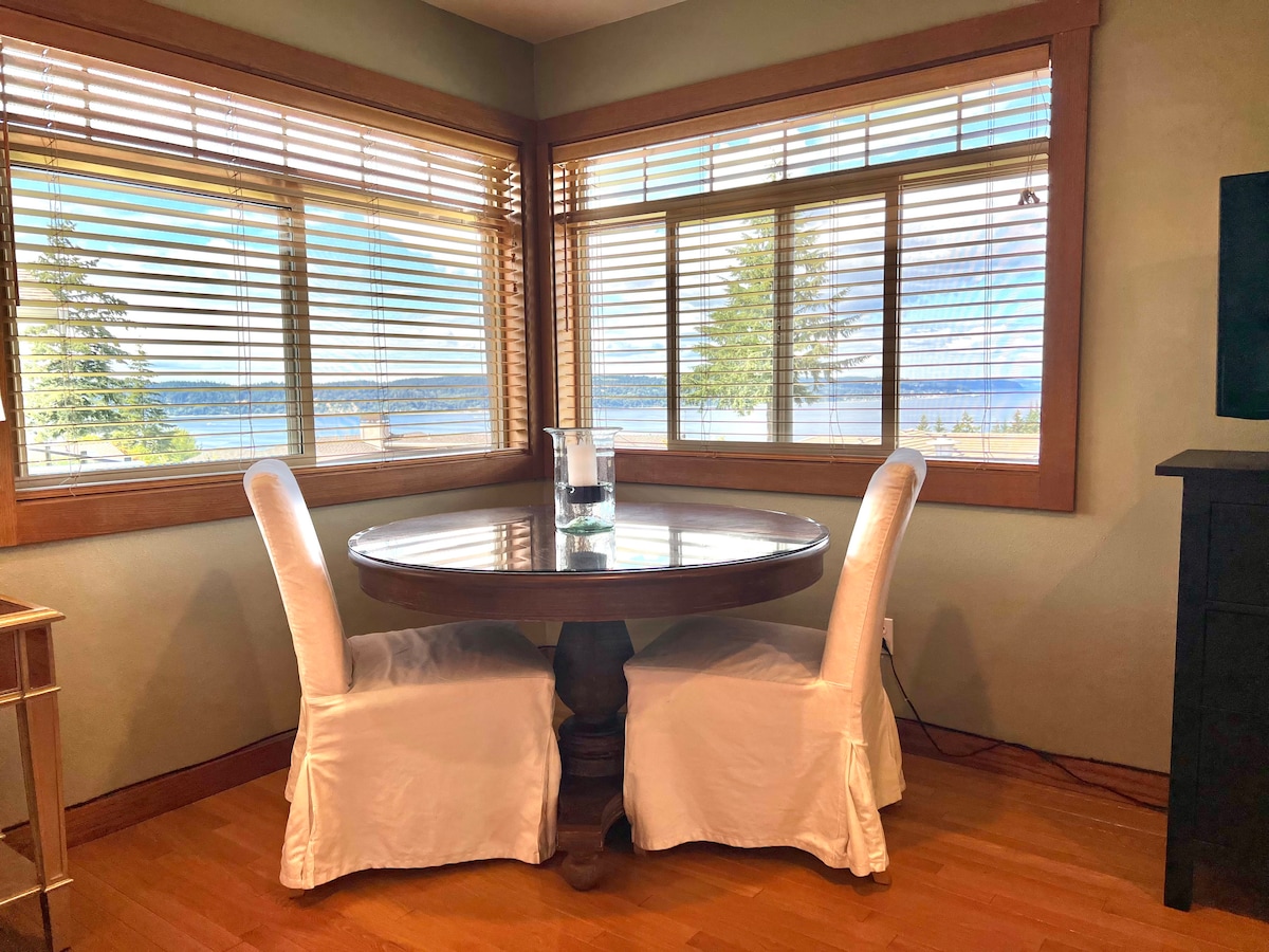 Our studio apartment has a private entrance and a private Juliet balcony to enjoy stunning views of Puget Sound. Sleep in comfort on a Tempurpedic bed with adjustable head and foot lift. Additional sofa bed for extra guests. All necessities provided. Private indoor pool with views out to Puget Sound. Many attractions are within a 10 minute walk, including Mukilteo beach, the ferry terminal, the Sounder train to downtown Seattle or Mukilteo town.