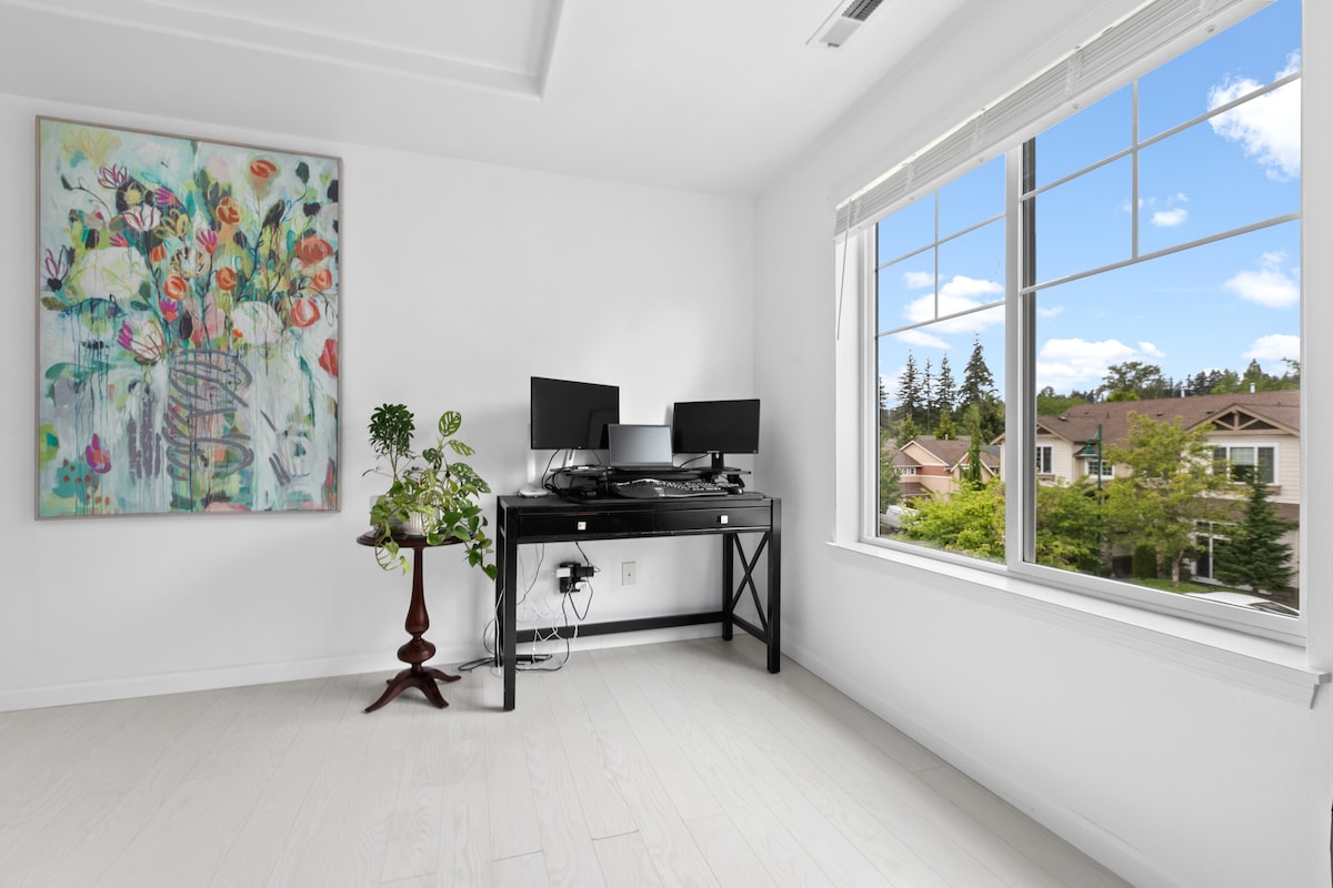 Escape to a warm and welcoming Bothell retreat designed for comfort and ease. Relax in a peaceful king bedroom, work from a dedicated office with fast WiFi, and enjoy a full kitchen and in-unit washer/dryer. Sip morning coffee on the quiet back patio surrounded by greenery. Ground-level entry with 2 parking spaces right outside your door make coming and going effortless. Minutes to Mill Creek Town Center, cafés, parks, and great dining — the perfect place to settle in and feel at home.