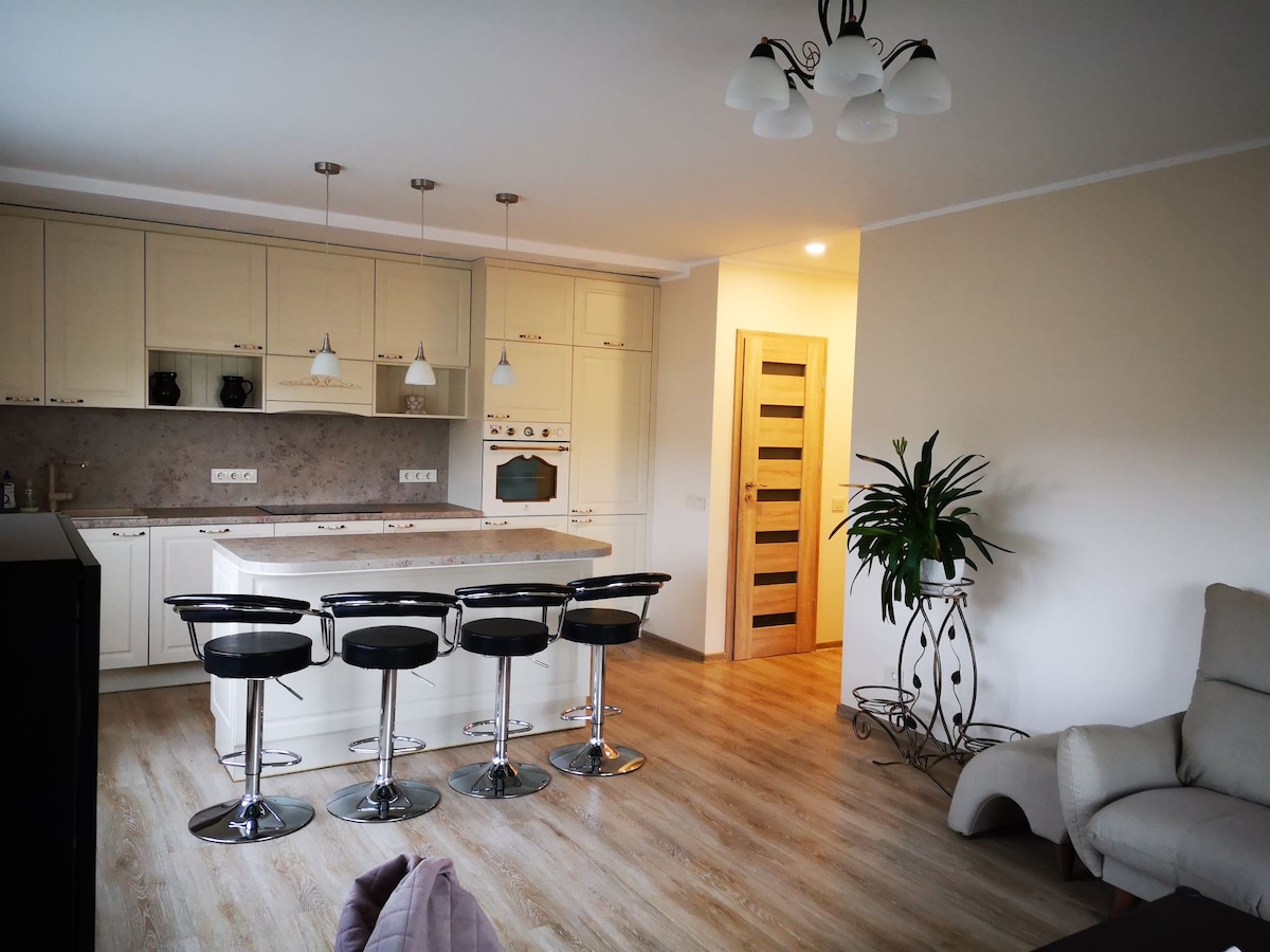 Newly designed, clean and cozy apartment in Druskininkai. It features 1 bedroom and a spacious sofa bed in the living room, a flat-screen TV, equipped kitchen, spacious bathroom. It is placed in a central but quiet area of Druskininkai. Free and fast Wi-Fi is offered. We speak Lithuanian, English and Russian.