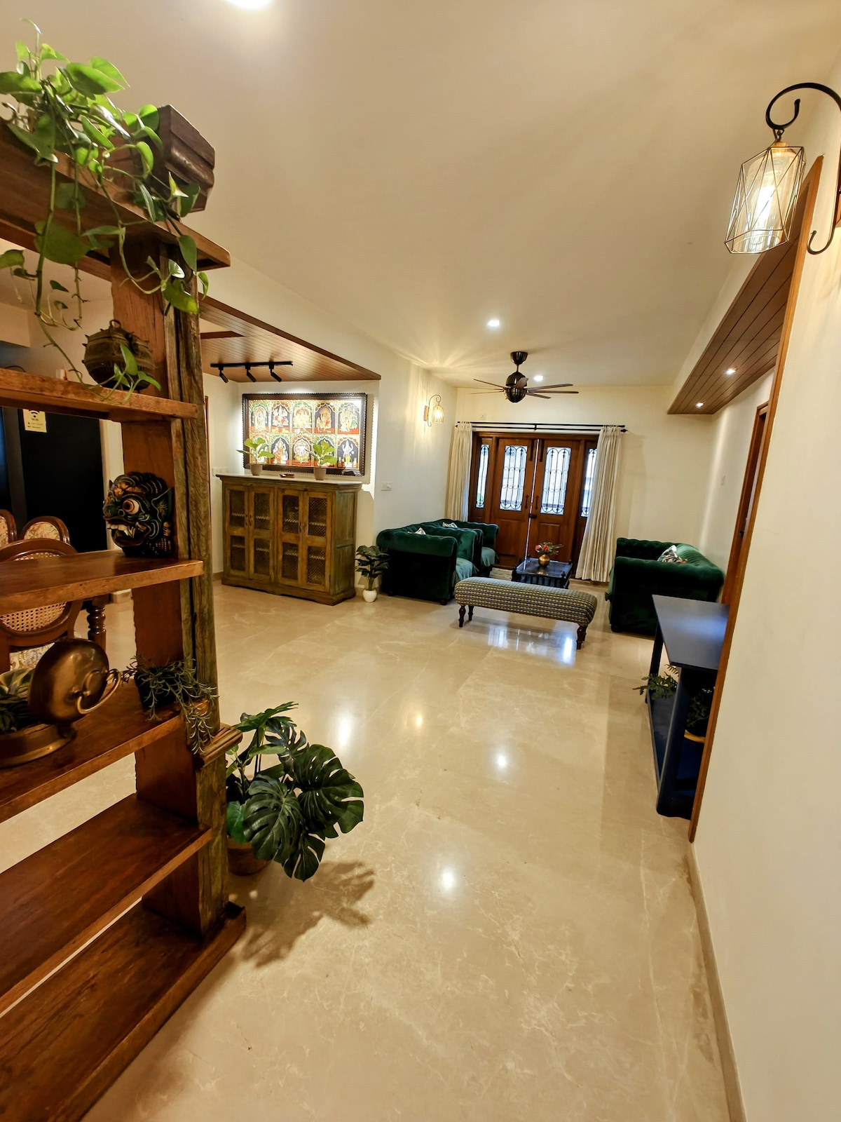 This beautiful house is located very well in Malleshwaram, Bangalore within 600meters (10min) walking distance from popular restaurants like CTR, Veena Stores etc. One of the oldest neighborhoods in Bangalore with the best South Indian food! This house is a cultural trip. The elements of decor, wall art and the house all have a story to tell symbolic of the area and the era of the house. You'll hear quaint temple bells all around. Take a walk around the beautiful neighborhood amidst the trees!