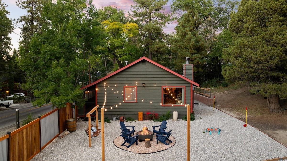 Welcome to Midnight Chalet, your modern A-frame escape in Big Bear Lake - peaceful tree & mountain views, relaxing deck with fire pit, cozy gas fireplace, and convenient location near The Village and the lake. Sleeps 5 | 2 bedrooms | 2 beds | 1 bathroom Spacious deck w/ fire pit & new Blackstone BBQ griddle Stunning tree & mountain views from the large A-frame windows Cozy living room w/ gas fireplace & Smart TV Fully stocked kitchen w/ Keurig coffee maker & high-quality cookware