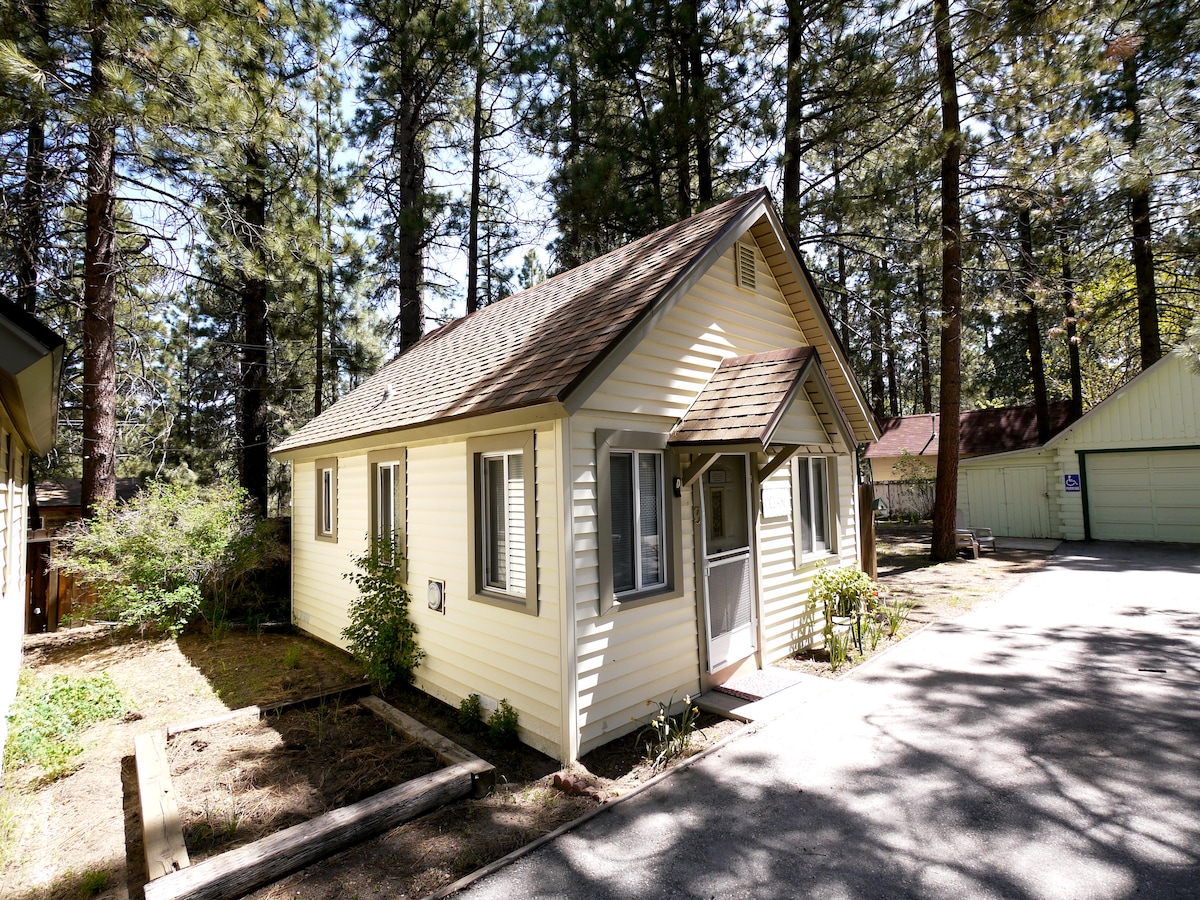 Cozy Studio Cabin nestled in Moonridge just between Snow Summit and Bear Mountain Resorts. The entire Cabin is yours. No sharing with this Cabin! Perfect for a couples retreat, a small family getaway, a fun adventure with a friend, or as a work-from-home alternative. Don't overpay for a large space, save money with only the essentials. This 479 sq. ft. cabin has everything you need including a large deck, high speed internet, free EV charging-NEMA 14-50, and even air conditioning!