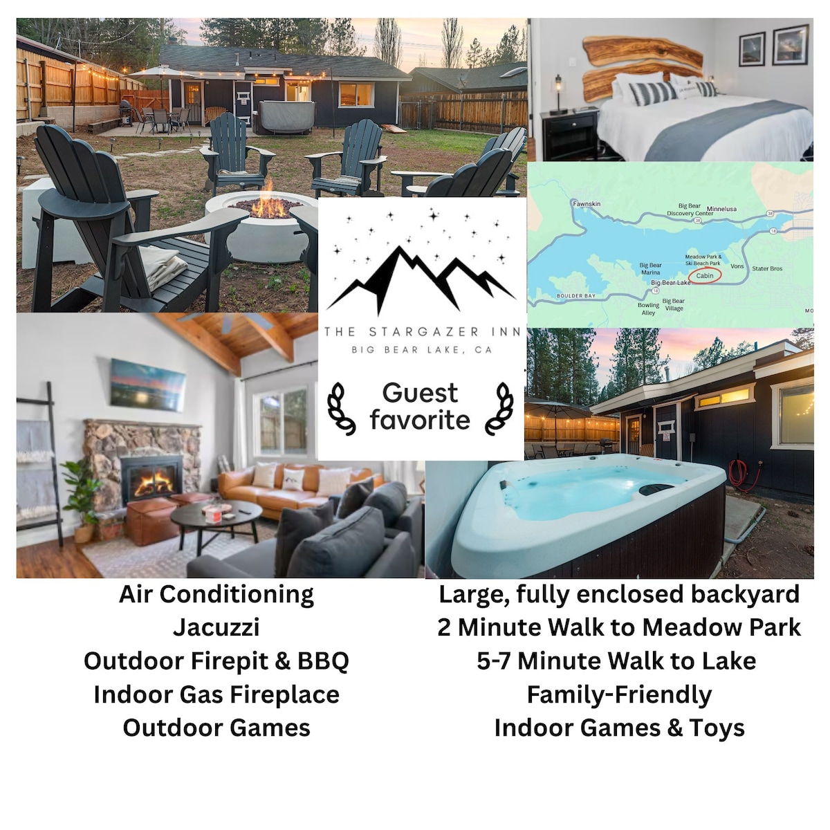 Escape to our recently renovated 1936 Cozy Cabin. Walking distance to Bear Mountain, Alpine Zoo, Bristlecone hiking trail, 1.1 miles to Snow Summit, 2.9 miles to the Village for great shopping and more! After your great adventures, enjoy our outdoor fire pit and soak in the hot tub under the stars. Our Cabin sits on a large 5K sq ft fenced lot. Cabin includes: central heat, AC, 5G Wifi, smart TV, Super Nintendo, DVD Player, new appliances, propane BBQ, new mattress for a great night's sleep.