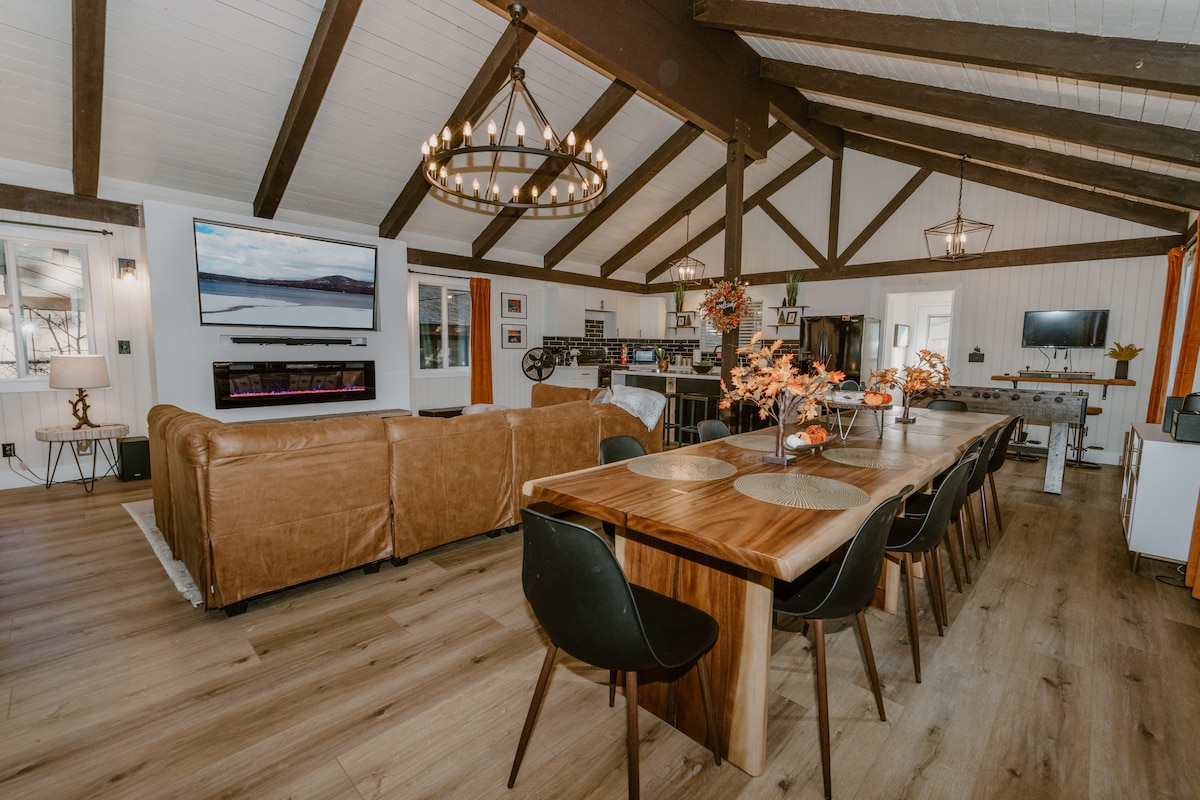 Only a few minutes walk from the lifts at Snow Summit, this luxury 3-bedroom home is ideal for entertaining. After a long day in the fresh air come back and enjoy a movie by the fire, retro arcade machines and foosball table or unwind on the our deck in our spa. Roast marshmallows on the firepit and enjoy some warm cocoa compliments of the house, whilst gazing up at the stars. This cabin has everything you need for a truly relaxing and memorable vacation.