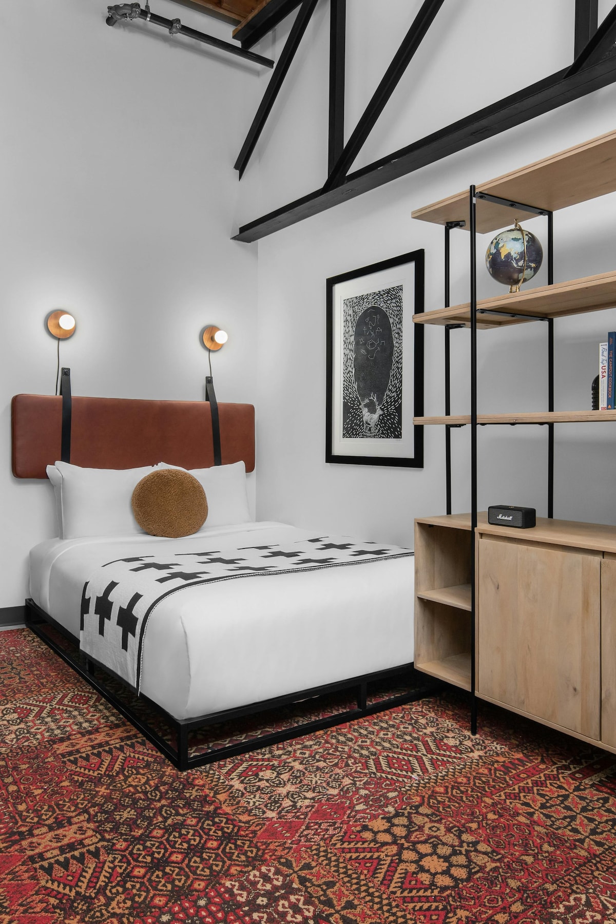 The Legacy Suite offers two private bedrooms with a shared lounge. Each bedroom features a spacious full bed, warm lamp lights, and a place to hang your things. The bathroom sits just opposite the two bedrooms, with a walk-in shower stocked with Soapbox Soaps, a vegan and cruelty-free company that proudly supports developing communities around the world. Your room is equipped with a minifridge, counter space, flat screen Roku TV and a cozy sofa - everything you need to relax and unwind.
