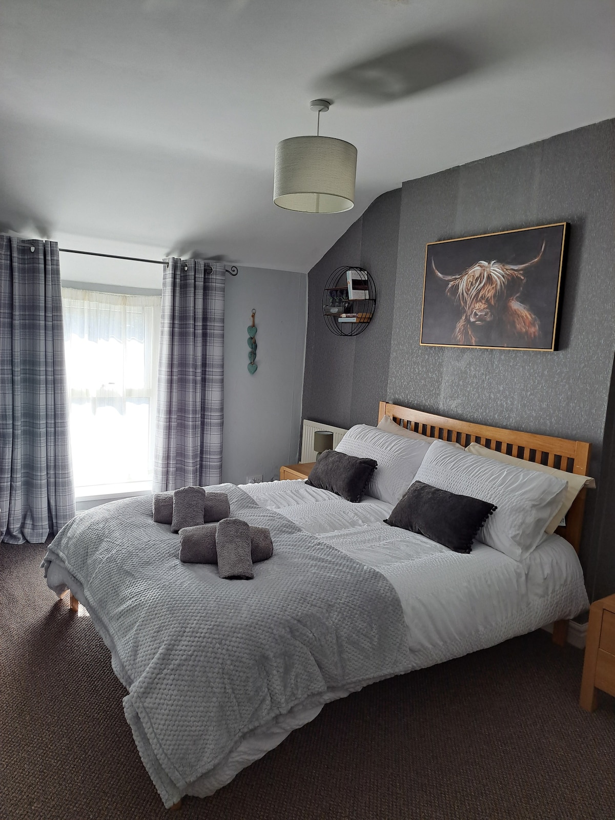 A bright & happy house. It has a lot to offer families, friends & couples. The living room is spacious. Brand new kitchen and brand new bathroom with shower and bath. I have a huge king size bed in the main room and a bunk bed in the second room. Outside yard with table and chairs. Llanberis has a choice of cafe’s, shops, pubs and restaurants. As well as unlimited hiking, running and cycling routes. My house is a 500m walk from the lake. Any questions I’m here to help and advise ! Diolch 🤗