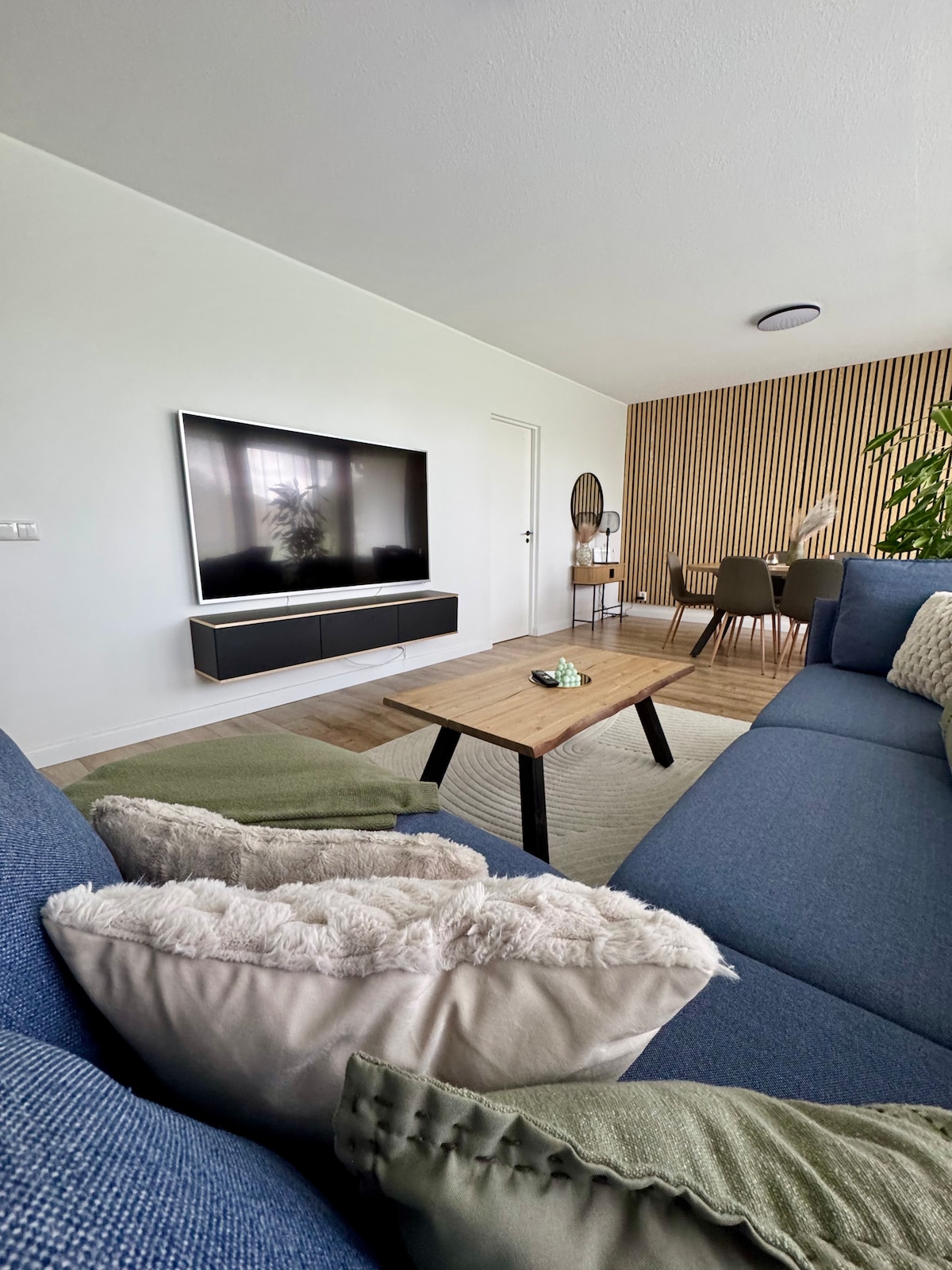 24/7 Check-in. Cleaning is included before arrival and after check-out. The 160 bed is made with clean bed linens, and we will provide you with both small and big towels. Free, private parking outside the apartment. 50 meters walk to the big food market. You live in the City Centre, so it is close to restaurants and shops. Swimming, bowling and gym hall is 1 km from the apartment. The kitchen is fully equipped and will also include a coffee maker, water kettle, microwave and a dishwasher.