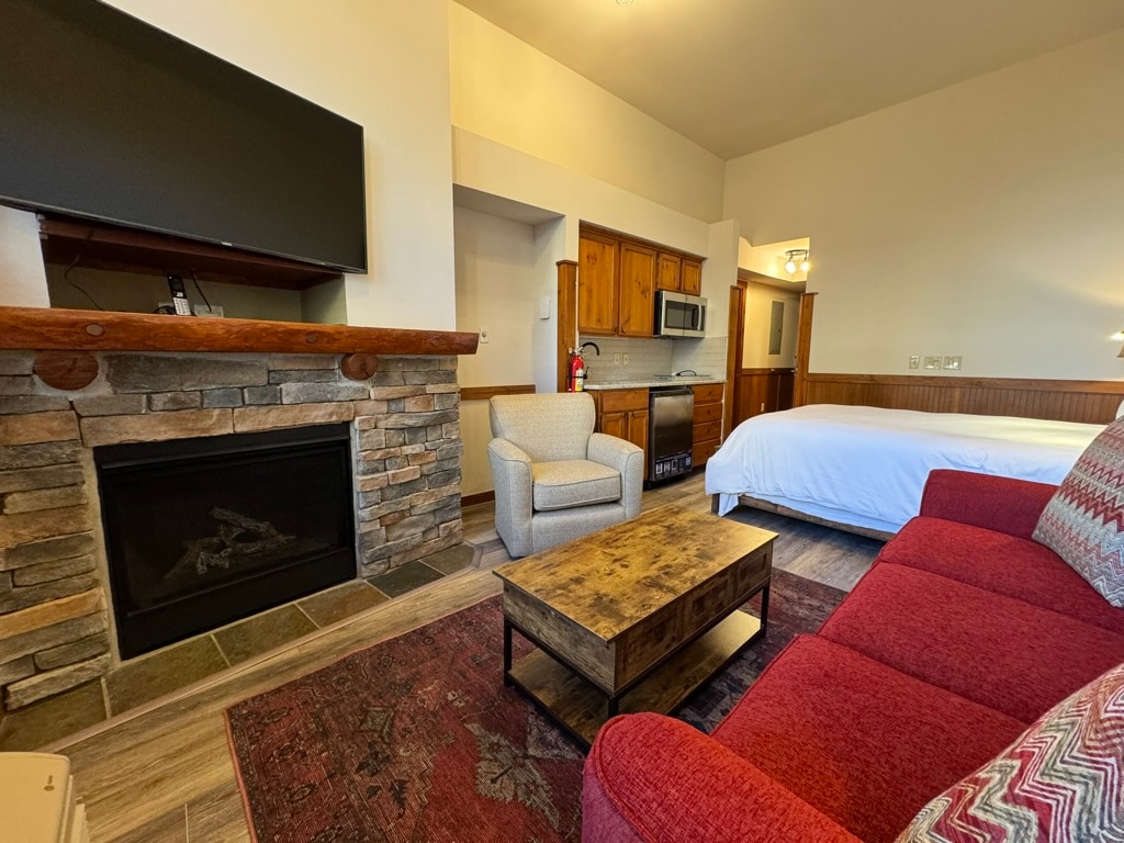 Completely remodeled studio. There is no better value in the Snowshoe area. The affordable option that won't leave you disappointed when you open the door. Cherry floors(lvt), pine walls, shaker cabinets, 58" Samsung TV, built in fireplace w/ walnut mantle, tons of lighting options, marble over sized bathroom sink, modern appliances, full kitchen. MLK and Pres weekend are also 3 day mins at the holiday rate Only these 3 weekends.