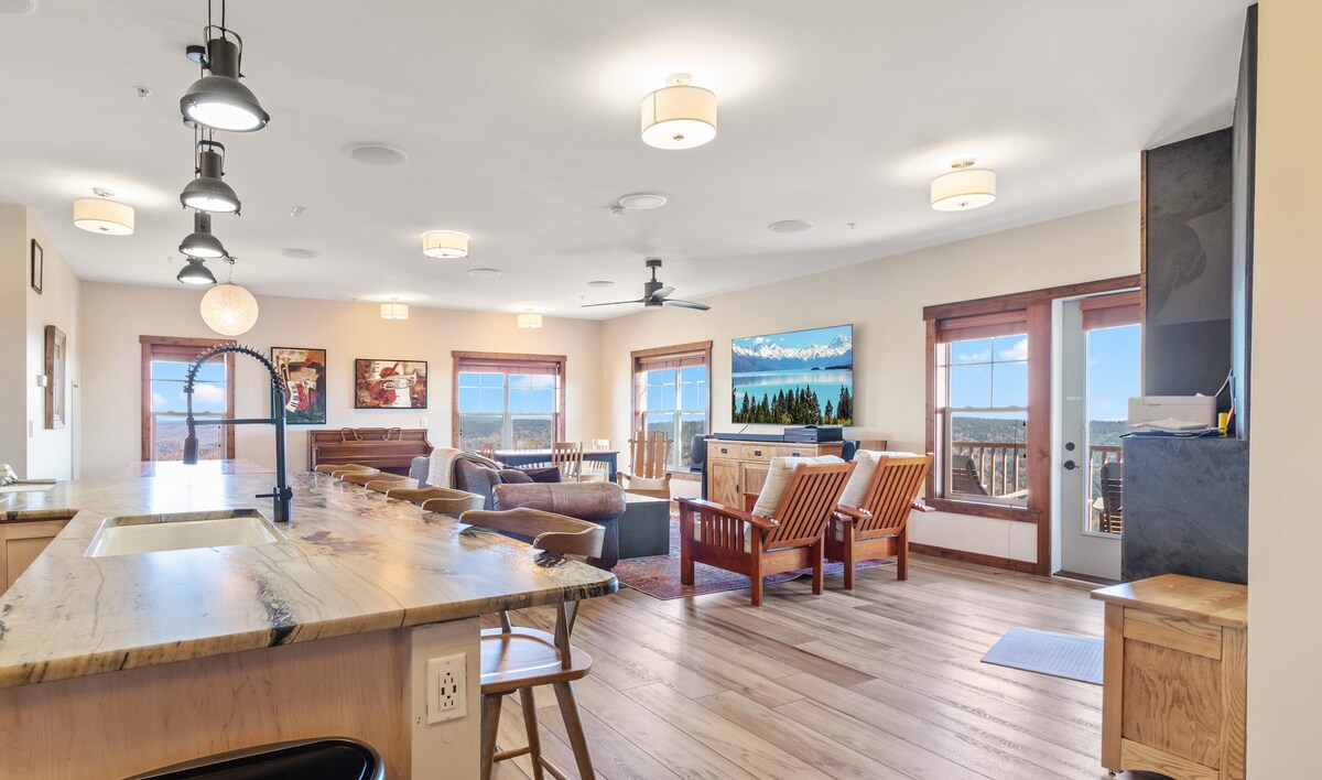 Your family will have all the necessary amenities in one place when you stay at this centrally-located condo. Conveniently located at the top of the Soaring Eagle Express for easy pit stops. Soaring Eagle lift is tentatively fully operational starting late December. During the winter, Hoots Lounge, hot tubs, and equipment rentals are available on the 1st floor. Summer time lends itself to a quiet escape with epic sunrises.