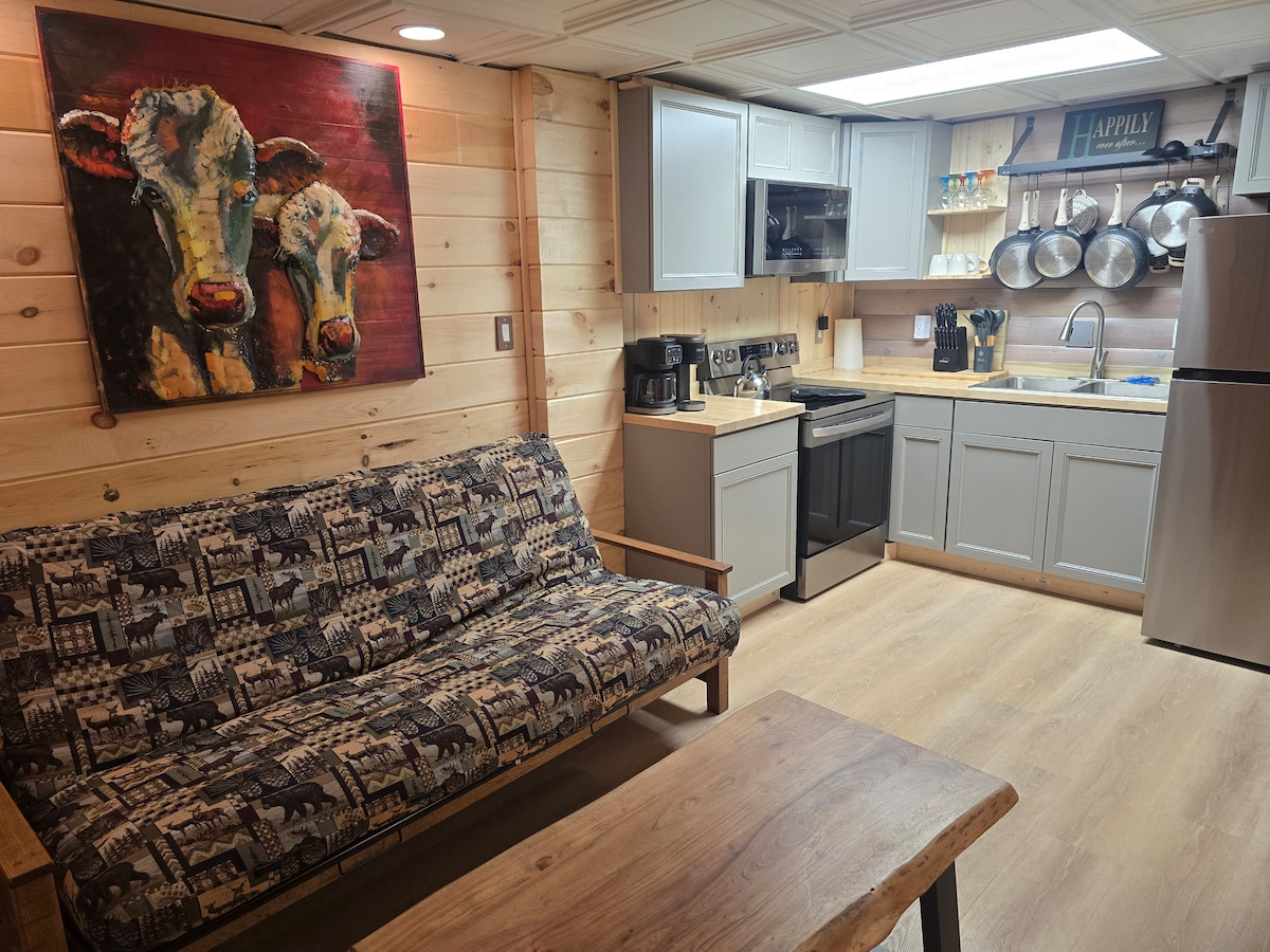 #1 wish-listed Airbnb at Snowshoe Mountain and in West Virginia! Fully appointed superior studio condo at Snowshoe, WV. Recently upgraded, queen cedar log bunk bed, queen sleeper sofa, fully functional kitchen, wood fireplace, washer/dryer in unit, ski locker, smart TV and high speed wireless internet. Approximately 3 minute walk to Powderidge lift and 10 minutes to village. Additional availability right next door at 23 Mountain Crest, also on Airbnb.