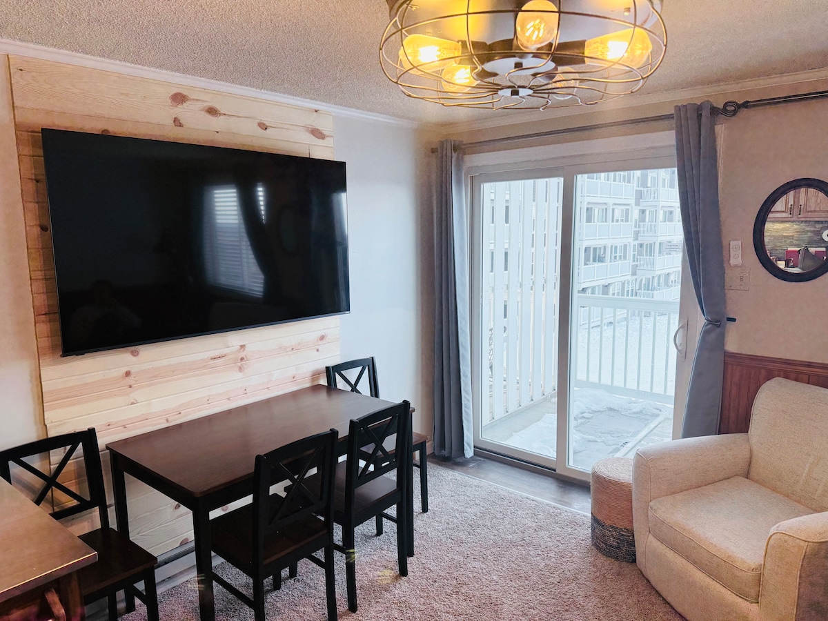 Modern meets old world charm in this newly renovated Highland House condo! Enjoy a fabulously appointed unit with many unique barnwood accents! The kitchen includes a full size refrigerator, dishwasher, microwave, toaster, coffee pot, induction cooktop and a pullout table for two. The king-sized memory foam bed is amazing and at 14 inches off the ground, is the perfect height to store unused luggage.