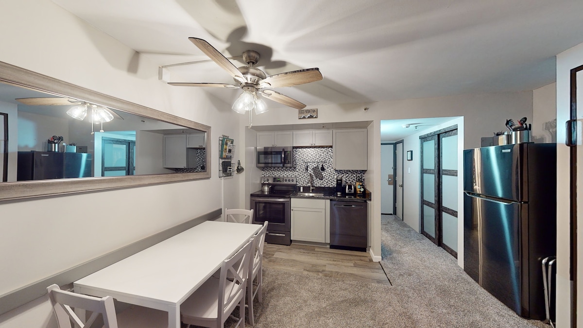 Modern meets old world charm in this newly renovated Highland House condo! Enjoy a fabulously appointed unit with many unique barnwood accents! The kitchen includes a full size refrigerator, dishwasher, microwave, toaster, coffee pot, induction cooktop and a pullout table for two. The king-sized memory foam bed is amazing and at 14 inches off the ground, is the perfect height to store unused luggage.