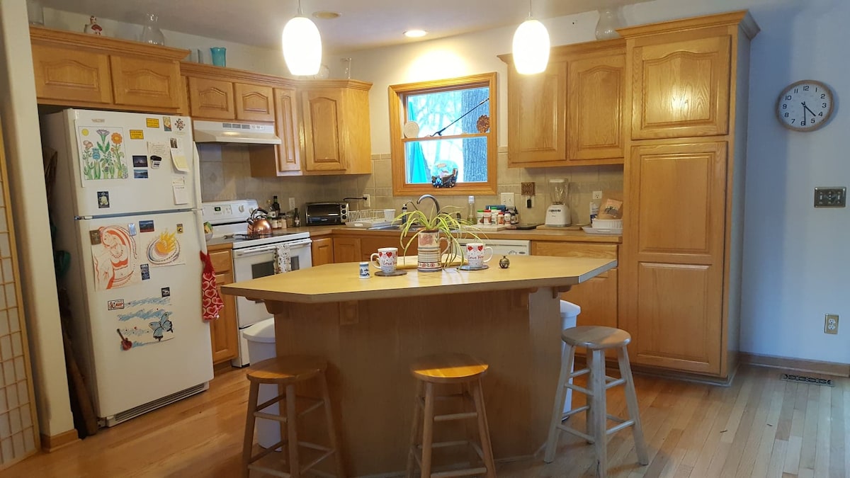 Step into a private and cozy space. Relax watching TV in bed or on the couch. This place is part of our walk out basement, so you may hear day to day living upstairs. For your safety there is a Ring camera installed at the entrance and will light up the entryway when it’s dark. Parking is on the well lit public street. Easily walk up our dedicated Airbnb sidewalk, no steps, walk around to the back of the house. You’ll be in a serene space that makes you feel right at home.