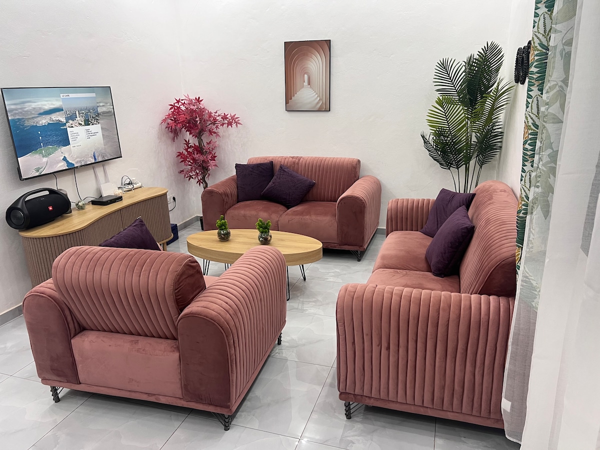 Relax with the whole family at this peaceful place to stay. Enjoy a peaceful stay in this cozy 1-bedroom apartment, ideal for solo travelers, couples, or remote workers. High-speed Wi-Fi Netflix & Smart TV Private balcony & green yard 24/7 security 2 clean bathrooms Close to shops & city center Unwind, relax, and feel right at home in this serene and stylish space.