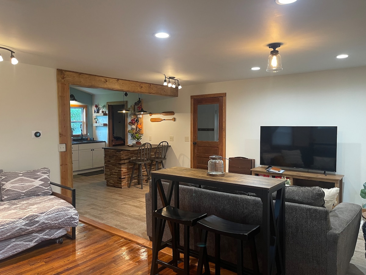 Welcome to Knudson Properties! A private home in the heart of downtown Mt. Pleasant, but tucked away by the river in a private and peaceful location. Walk to nearby restaurants, and coffee shops or take a 2-minute drive to the CMU Campus. The Water Park and Casino are a 8-10 min drive. This home is centrally located with a 'retreat-like' atmosphere. The home is fully stocked making it easy to pack light and plan big. A fav spot for CMU parents, alum, or those visiting the casino.
