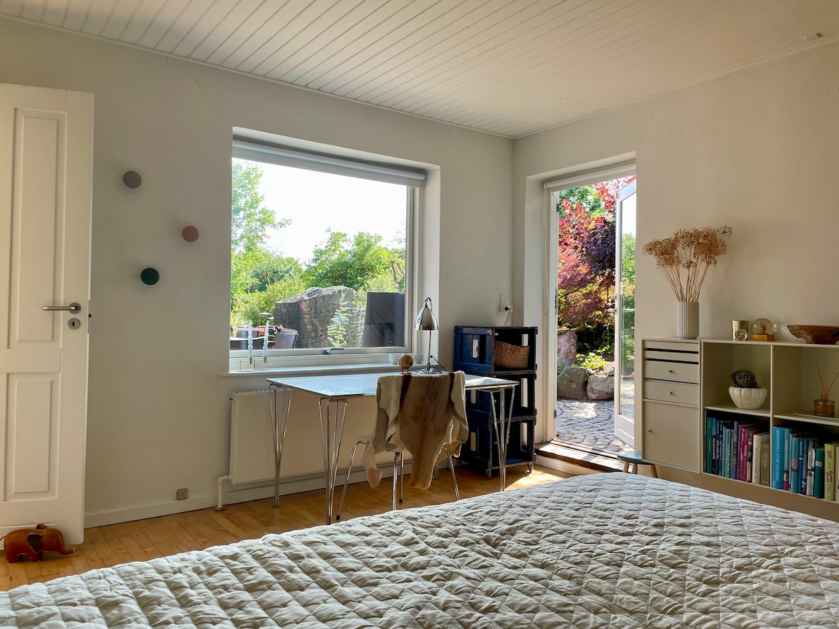 Nyd det simple liv i denne fredelige og centralt beliggende bolig. Egen indgang, eget toilet/bad, mini køkken med adgang til stort køkken. Mulighed for at der kan sove flere i værelset. Hjælp til at planlægge ture, samt mulighed for guidede tur med værterne. Guidet tur kan være både i bil, på cykel eller til fods. Naturskønne områder tæt på boligen, samt supermarked og offentlig transport tæt på boligen Erfaring med udlejning, er interesseret både i dialog med gæster og respekt for privatliv
