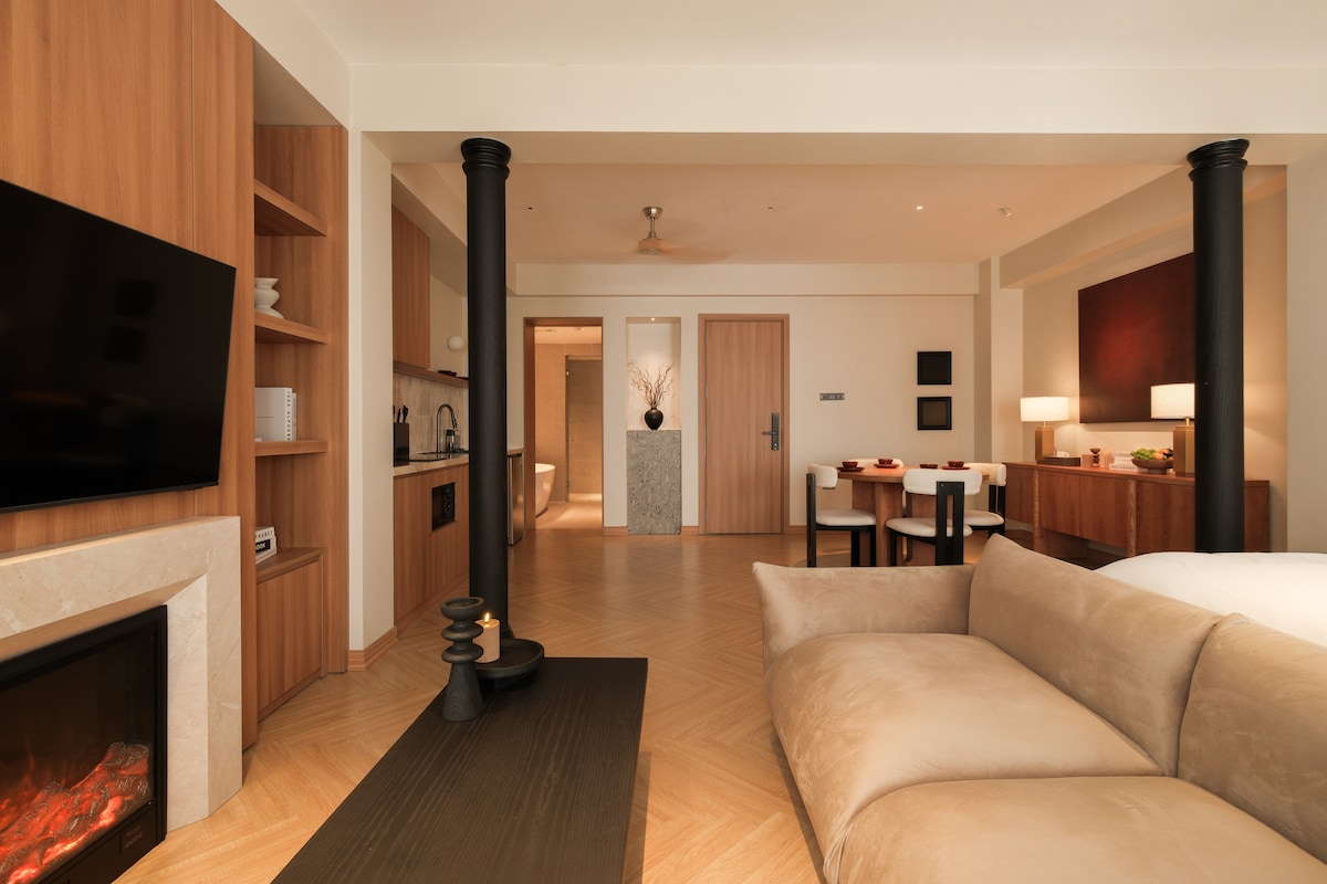 Tucked away in Hanoi’s French Quarter, this 82m² apartment offers an elegant blend of greenery and minimalist design. Inspired by Japanese aesthetics, the space flows gently from room to room, filled with natural light, soft textures, and calming tones. A spacious balcony with lush plants invites slow mornings and peaceful evenings. Every detail is intentional — a quiet retreat in the city.