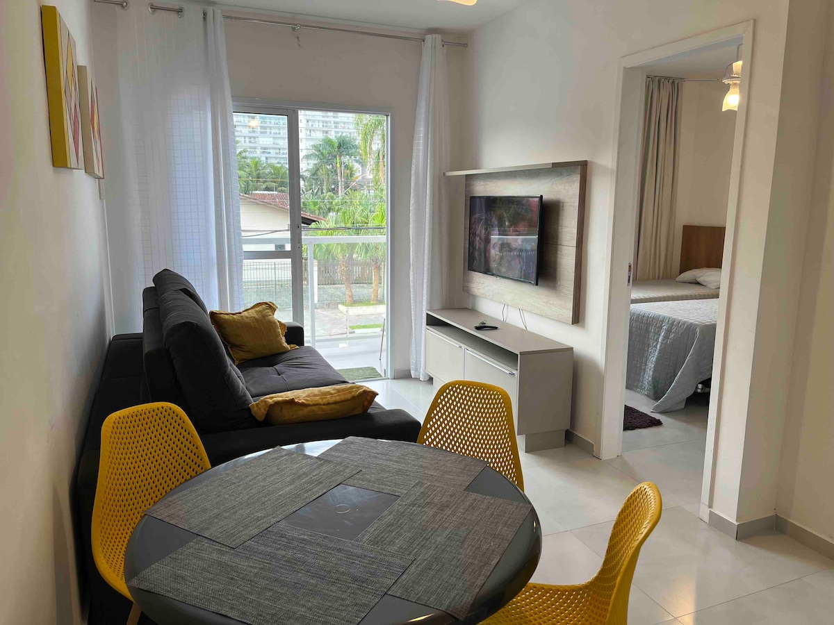 Lindo apartamento localizado na melhor região de São Vicente com vista ao mar e pé na areia. Oferecemos vaga em estacionamento próximo ao local. Próximo a restaurantes, bares, farmácias, supermercados e as principais praias da cidade. O Ape dispõe de ar condicionado, Wi-Fi de 350Mb, TV 55” com canais abertos e Netflix, enxoval completo, cama e sofá cama confortáveis, cozinha completa, além de uma mesa de jantar com vista apaixonante. Diz aí se não é uma delícia para passar um tempinho?