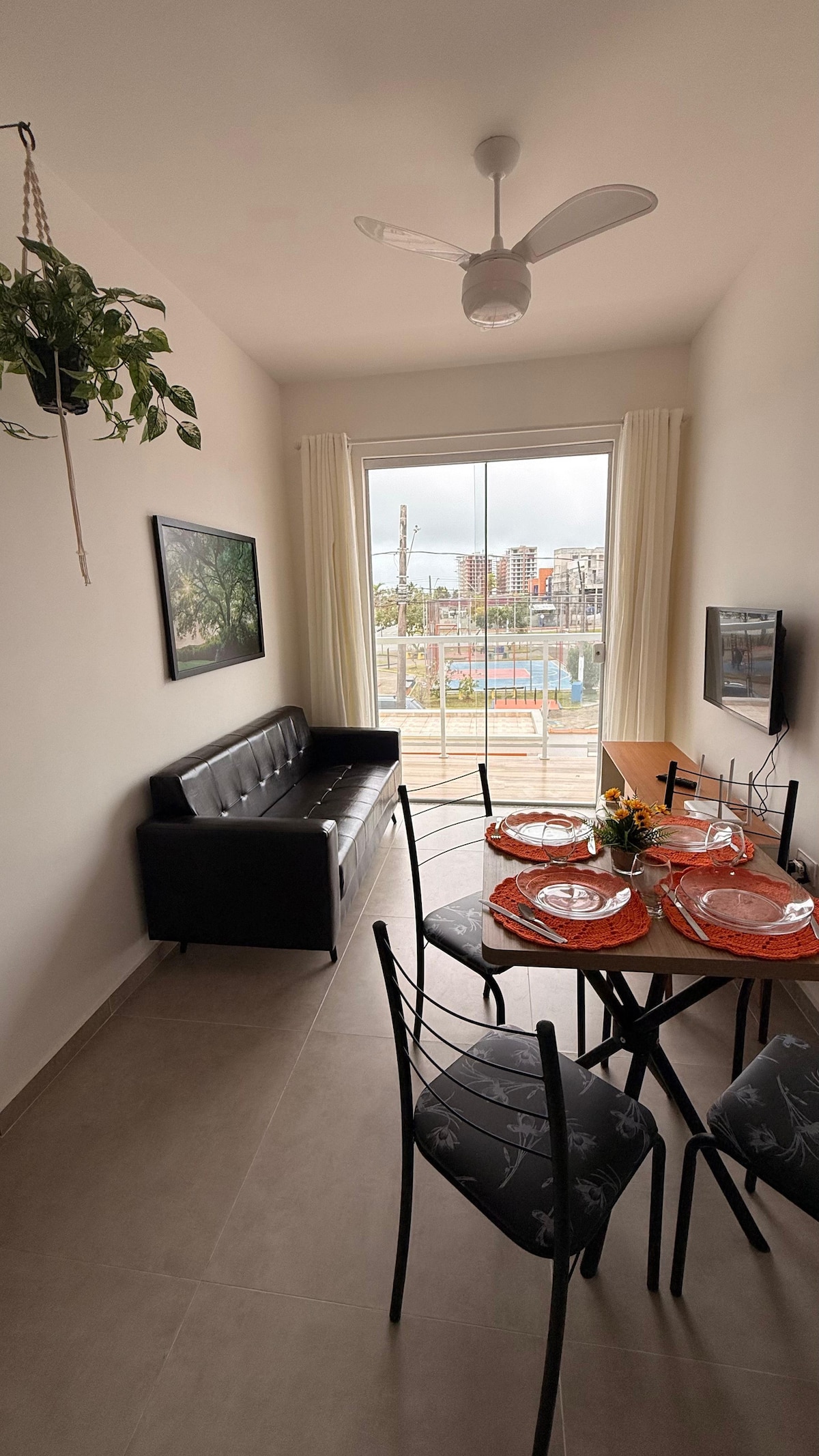 Apart. in an Azorean style condo in one of the most beautiful, clean and safe beaches on the brazilian coast. 6 min walking from (500m) the beach, it is a refuge for couples that offers a complete leisure for families: multi-sport court; beach tenis court; teqball foot-table; swimming pools with hydro; kiosk with barbecue, pizza oven and ice machine; party room with gourmet space, games room and TV; playground; saunas with heated pools; exclusive wi-fi; gym; beach service (3 chairs + parasol).