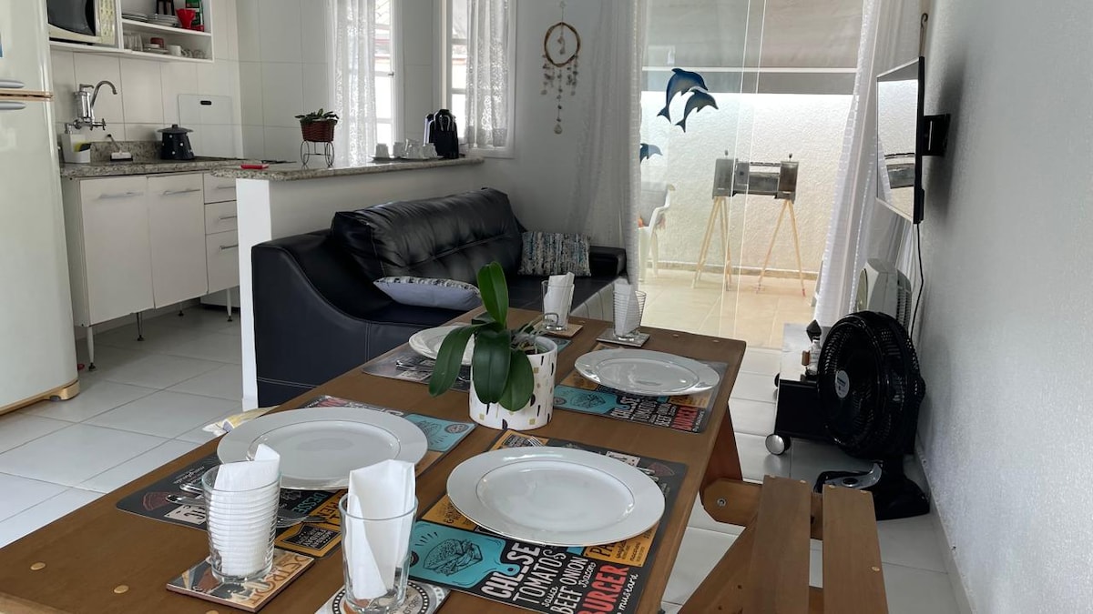 Sinta-se como se estivesse em sua casa de praia! Apartamento bem decorado e super bem equipado, com ar condicionado quente e frio nos dois dormitórios (01 suíte), sala e suite com tv, internet de alta velocidade, Netflix, HBO, Wi-Fi. Sua família vai estar perto de tudo excelente localização: 2 hipermercados , 3 farmácias, restaurantes, Burguer King e feira livre, Praia da Enseada à uma quadra. Possível Self Check in, *trazer roupas de cama e banho.