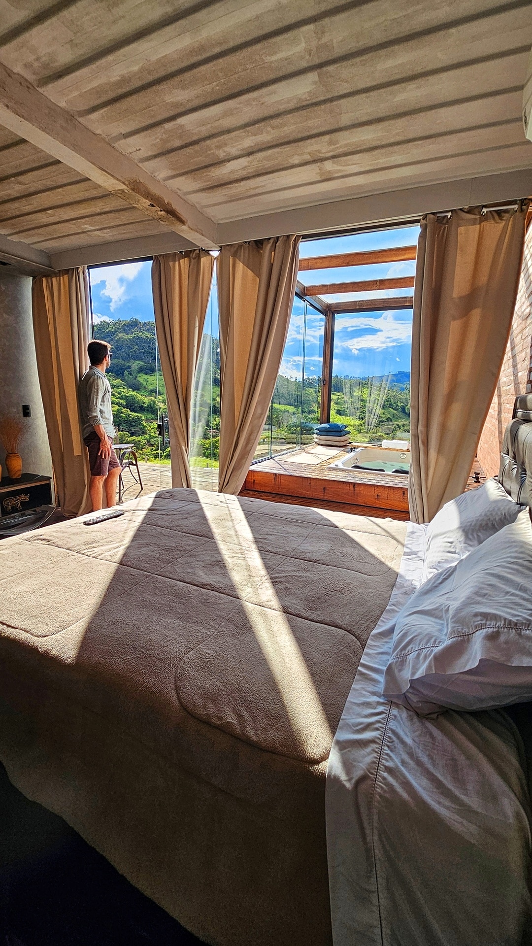 A cabana Recanto do Vale é justamente o que você e seu amor precisam,cada detalhe foi pensado pra que vc tenha dias incríveis e momentos inesquecíveis. por ser toda fechada de vidro pode ser dias frios com chuva e vento que vc vai aproveitar a hidromassagem aquecida apreciando a vista das montanhas com total conforto em um lugar extrema paz e vc pode também desfrutar da área em comum que temos um lago de carpas e um rancho pra curtir a vista.