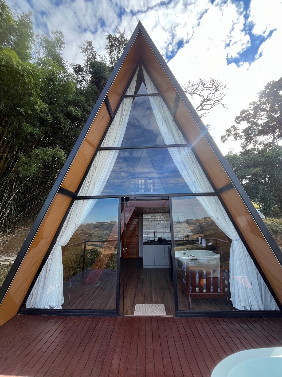 Desfrute de uma experiência única hospedando-se em uma floresta particular 100% PRIVATIVA. Toda feita em madeira e vidro com espaços pensados para viver uma imersão na natureza. Temos fogo de chão, spa para 8 pessoas, sauna, balança, ducha externa, churrasqueira a brasa, mini pista de caminhada, panelas de fondue, fora outros diversos utensílios domésticos, disponibilizamos espuma de banho, lenha e carvão, além de toalhas e lençois de primeira linha. Esperamos vocês! @cabana_mantiqueira
