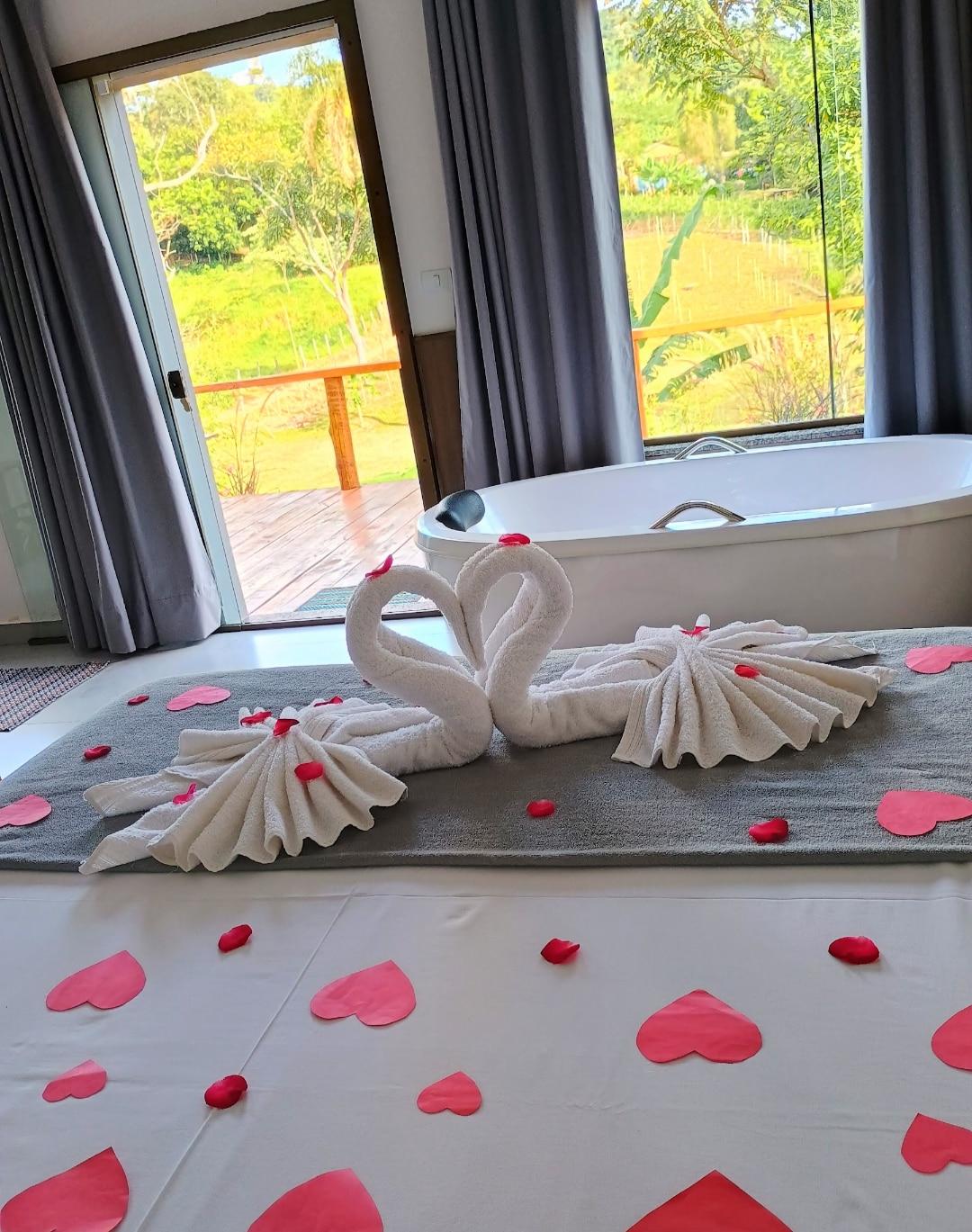 A Suíte Lavanda conta com uma banheira exclusiva de hidromassagem para uma experiência ainda mais aconchegante, ideal para casais que buscam tranquilidade, contato com a natureza e momentos de descanso profundo. Localizado no Jardim das ervas, em meio ao verde, a suíte oferece uma vista encantadora para o vale, cercado por ervas aromáticas e pelo som da natureza — perfeito para quem deseja se desconectar da rotina e reconectar com o essencial.