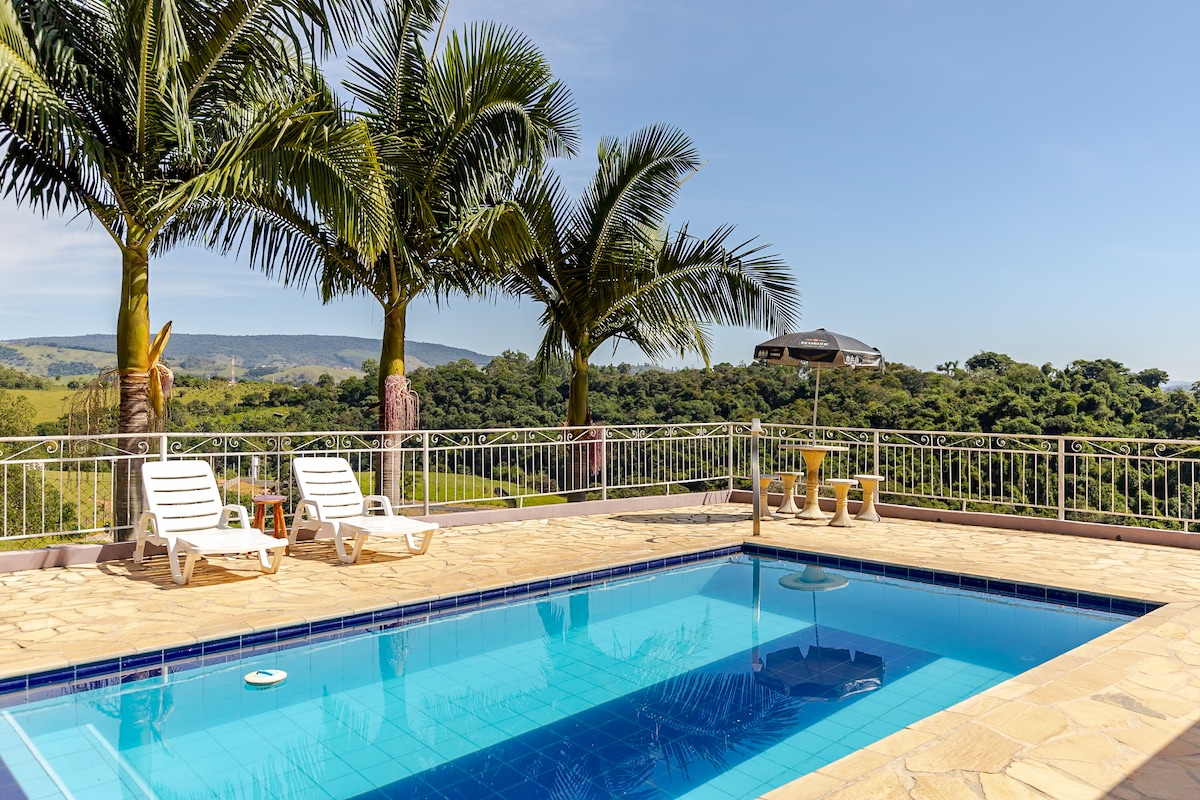 O sítio esta super bem equipado para receber você e sua família. Com uma vista encantadora para as montanhas. A casa acomoda 15 pessoas Os hóspedes terão acesso exclusivo a toda a propriedade O sítio é pet-friendly 🐱 🐶 Churrasqueira Forno de pizza Piscina Lago para pesca 3 quartos 2 banheiros Área gourmet 2 TV led 50’ com netflix, Sky Wi-Fi Na cozinha fornecemos todos os utensílios, as tomadas sao 110V e algumas com marcações 220V Esta a 15 km da cidade com localização de fácil acesso.