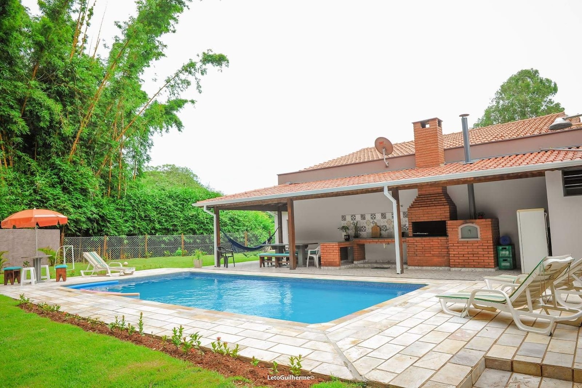 Temos piscina com vista para as montanhas, redário, fogo de chão, playground infantil e mesa de pebolim, diversão garantida para toda família!! Fornecemos roupa de cama (lençol, fronhas, mantas e travesseiros), temos todos os utensílios domésticos!! Graças a nossa excelente localização você está a menos de 10 minutos dos principais supermercados, lojas e até mesmo de pontos turísticos. Seu pet é bem vindo aqui, 100% fechado, com toda segurança para você e seu pet!