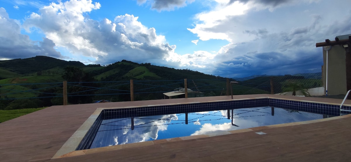 Imagine-se ao amanhecer, estar rodeado pela natureza da Serra da Mantiqueira, enquanto toma um café, livro favorito em mãos, e senta-se na varanda sentindo a brisa da manhã e escutando canarinhos cantando. A tarde, na churrasqueira colonial, preparar refeição para toda família, diversão na piscina e hidromassagem aquecida. O por do sol, no horizonte entre as montanhas vai se escondendo, e como uma obra de arte em transmutação, a cor do céu percorre o espectro até a noite estrelada no campo.