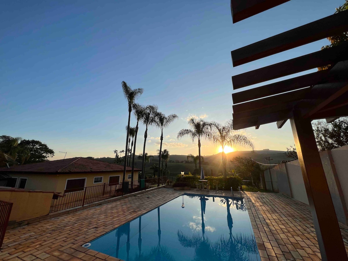 Venha desfrutar de deliciosos momentos com toda sua família. Garantimos uma cozinha super equipada!Em meio as montanhas no vale das Aguas.Paz e natureza possibilitarão momentos inesquecíveis! Contato com animais,piscina, jacuzzi ,decoração moderna,aconchegante e com todo conforto,camas de primeira em nossa casa de campo. Durante a semana você poderá fazer seu home office pois nossa internet é ótima! Estamos a 5 km do centro! Quartos com ar/condicionado e Piscina climatizada eNÃO tem Pernilongo