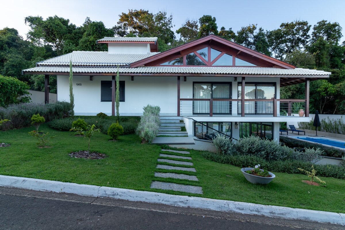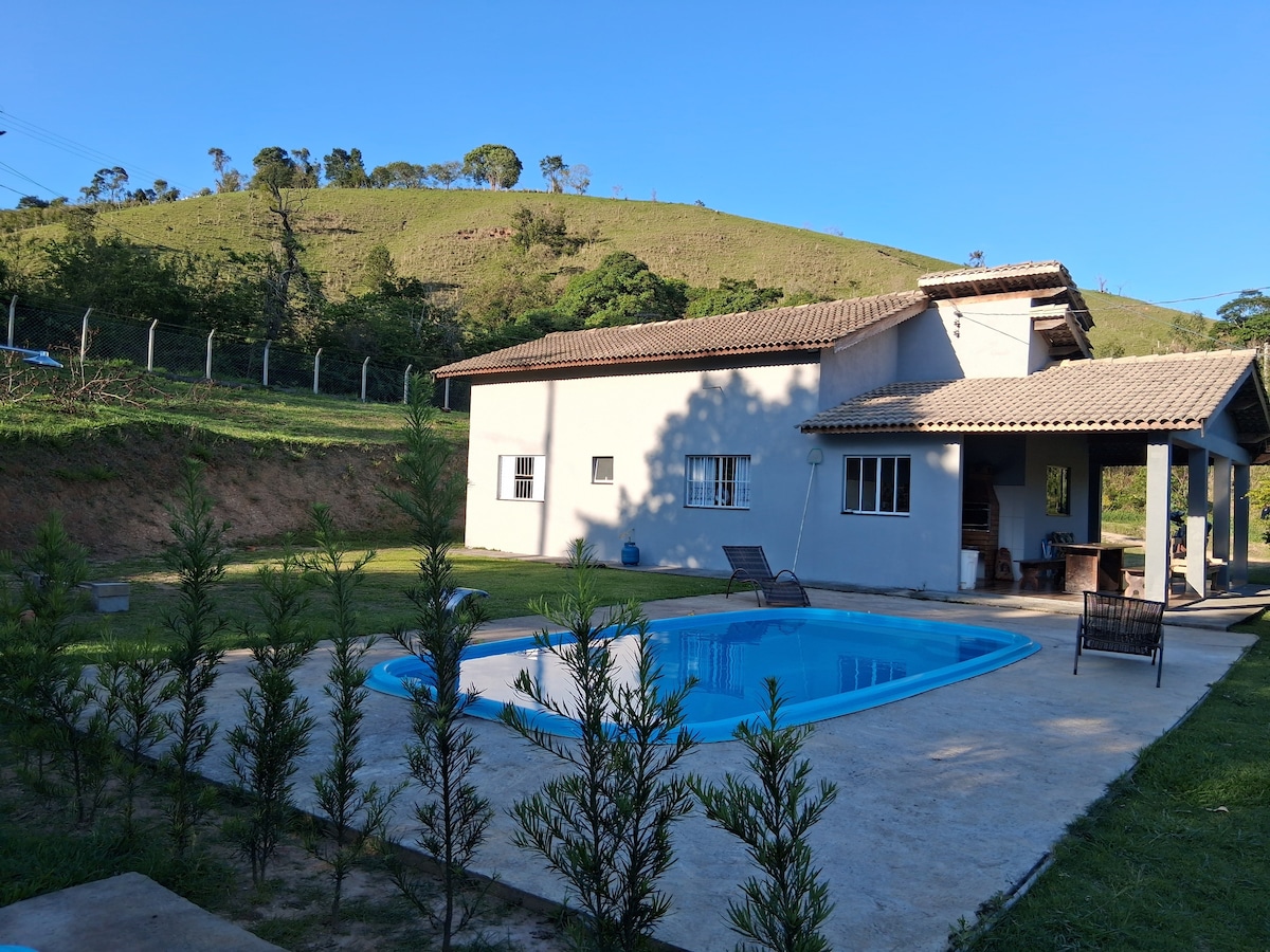 O sítio esta super bem equipado para receber você e sua família. Com uma vista encantadora para as montanhas. A casa acomoda 15 pessoas Os hóspedes terão acesso exclusivo a toda a propriedade O sítio é pet-friendly 🐱 🐶 Churrasqueira Forno de pizza Piscina Lago para pesca 3 quartos 2 banheiros Área gourmet 2 TV led 50’ com netflix, Sky Wi-Fi Na cozinha fornecemos todos os utensílios, as tomadas sao 110V e algumas com marcações 220V Esta a 15 km da cidade com localização de fácil acesso.