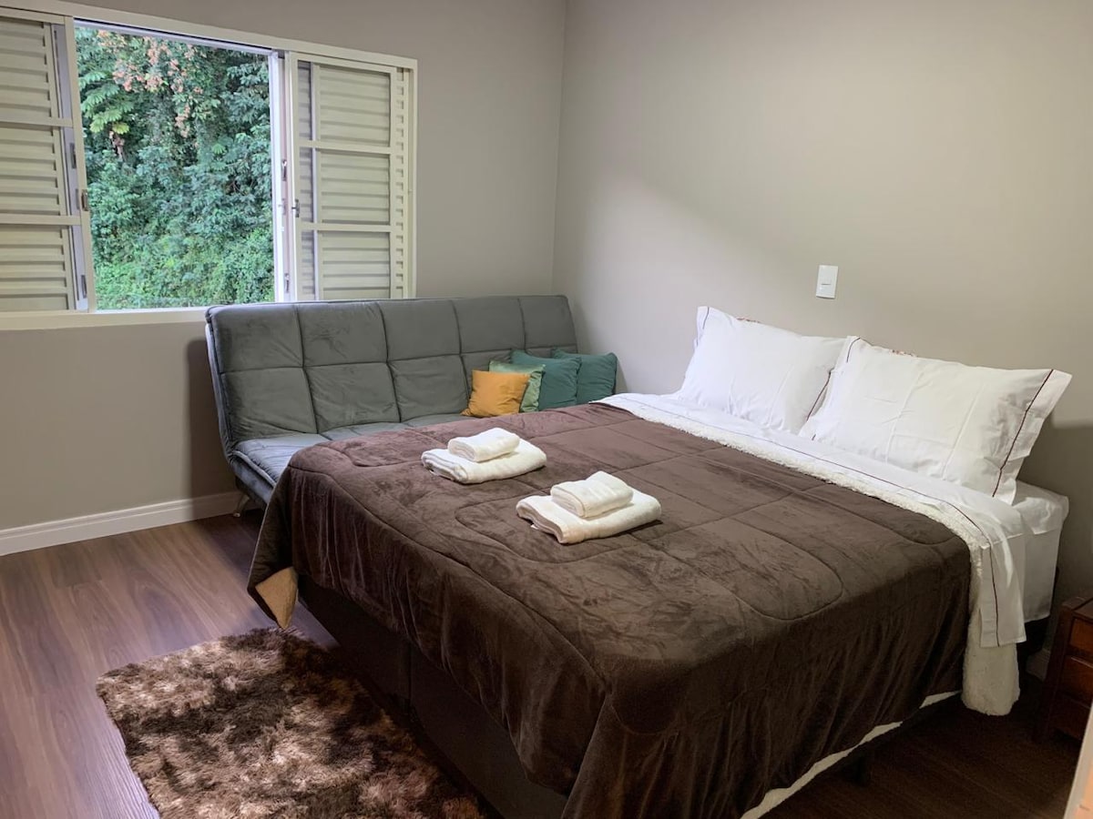Nosso espaço está no alto de uma montanha, um pedaço do paraíso em meio à natureza! Além do espetáculo da beleza ele foi construído pensando especialmente no lazer e comodidade para você e sua família, sendo ideal para desfrutar de momentos especiais! Estamos a menos de 10 minutos dos principais supermercados, lojas e até mesmo de pontos turísticos. Contamos também com espaço para camping! O espaço será 100% exclusivo para vocês e se tiver um pet será um prazer recebê-lo por aqui!