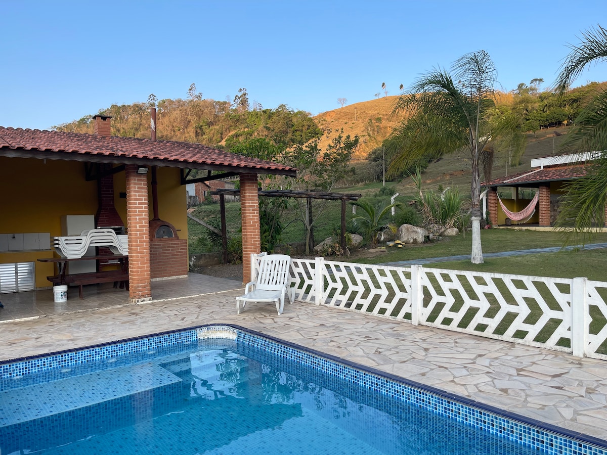 Venha desfrutar de deliciosos momentos com toda sua família. Garantimos uma cozinha super equipada!Em meio as montanhas no vale das Aguas.Paz e natureza possibilitarão momentos inesquecíveis! Contato com animais,piscina, jacuzzi ,decoração moderna,aconchegante e com todo conforto,camas de primeira em nossa casa de campo. Durante a semana você poderá fazer seu home office pois nossa internet é ótima! Estamos a 5 km do centro! Quartos com ar/condicionado e Piscina climatizada eNÃO tem Pernilongo