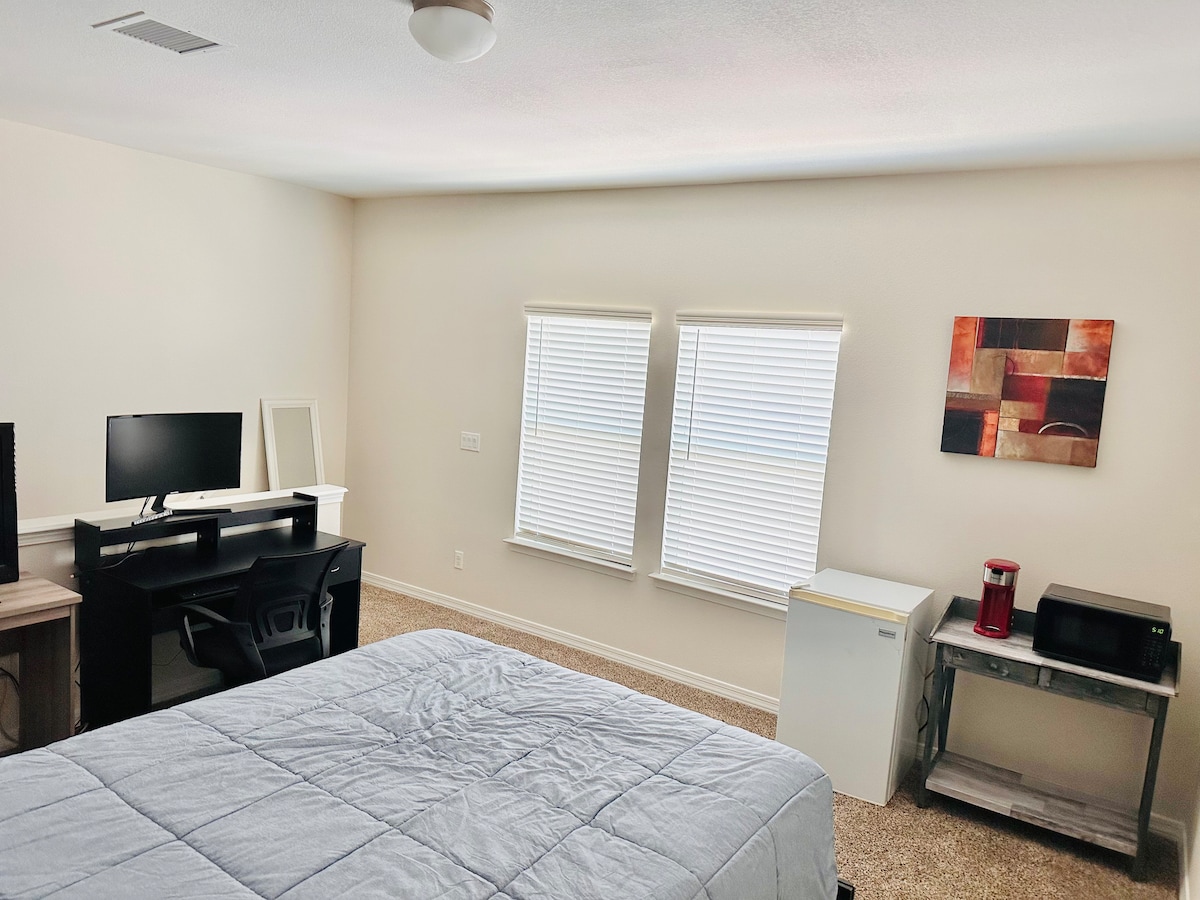 We didn’t just make our back room into an air bnb. No sir, this unit was created just for bnb. Kick back and relax in this calm, stylish space. Has high 8”ft security gates all around well lit patio. Adjustable sleep number bed. We made the best shower we could with great size and style. Our TVs we put in the unit are also top shelf Tvs. This place is designed from the ground up and corner to corner just for you.
