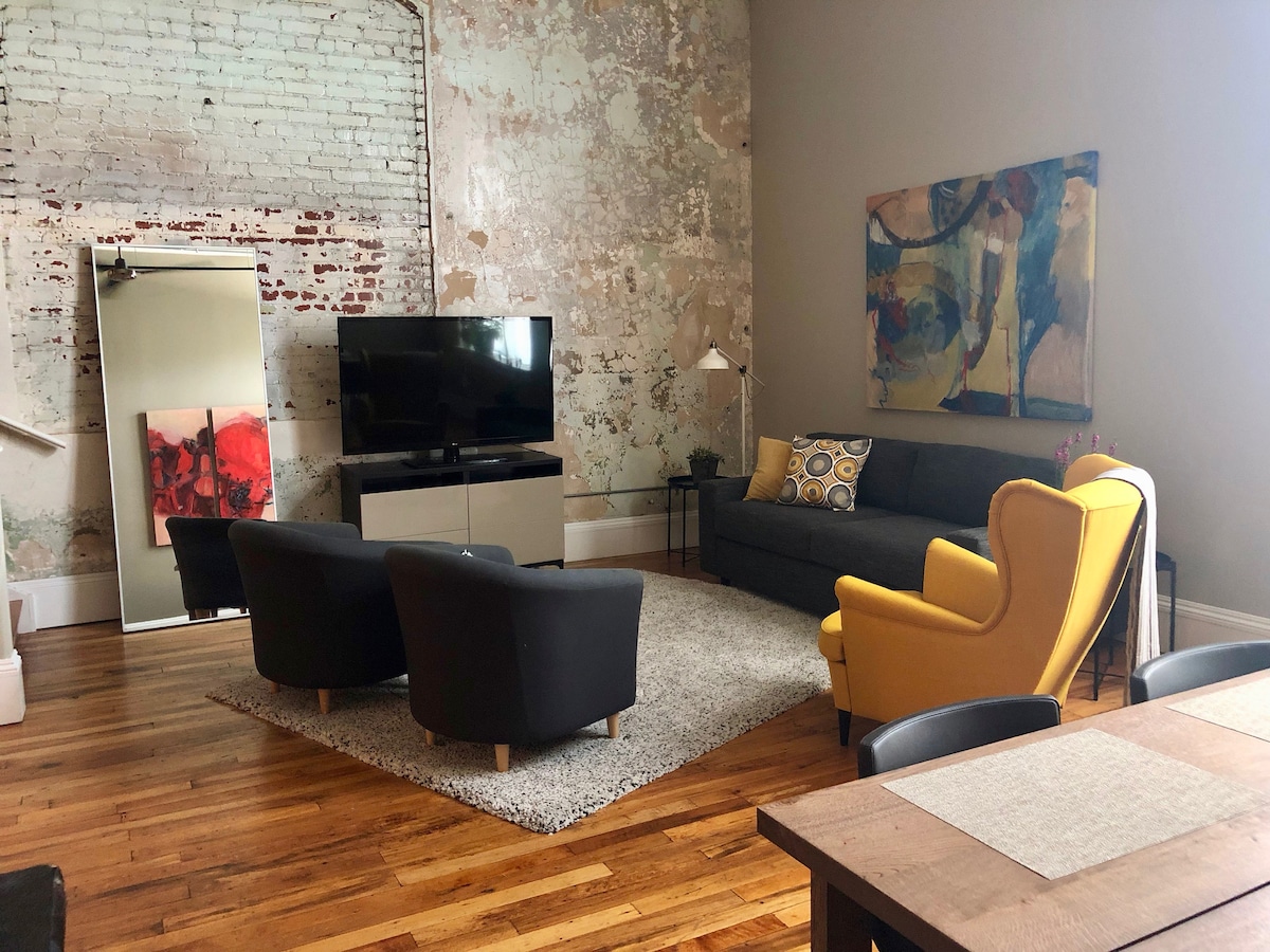 Incredible spacious loft apartment in a beautiful and lovingly restored historic building that serves as one of Columbia's favorite rental venues in the heart of the city. Close to USC, The Vista, Downtown and walking distance to Williams Brice Stadium and the Congaree River. Full kitchen and living room with brand new furniture and full ADA compliant bath down, sleeping loft with new mattress and half bath with washer dryer up. 4 guest maximum. No parties are allowed.