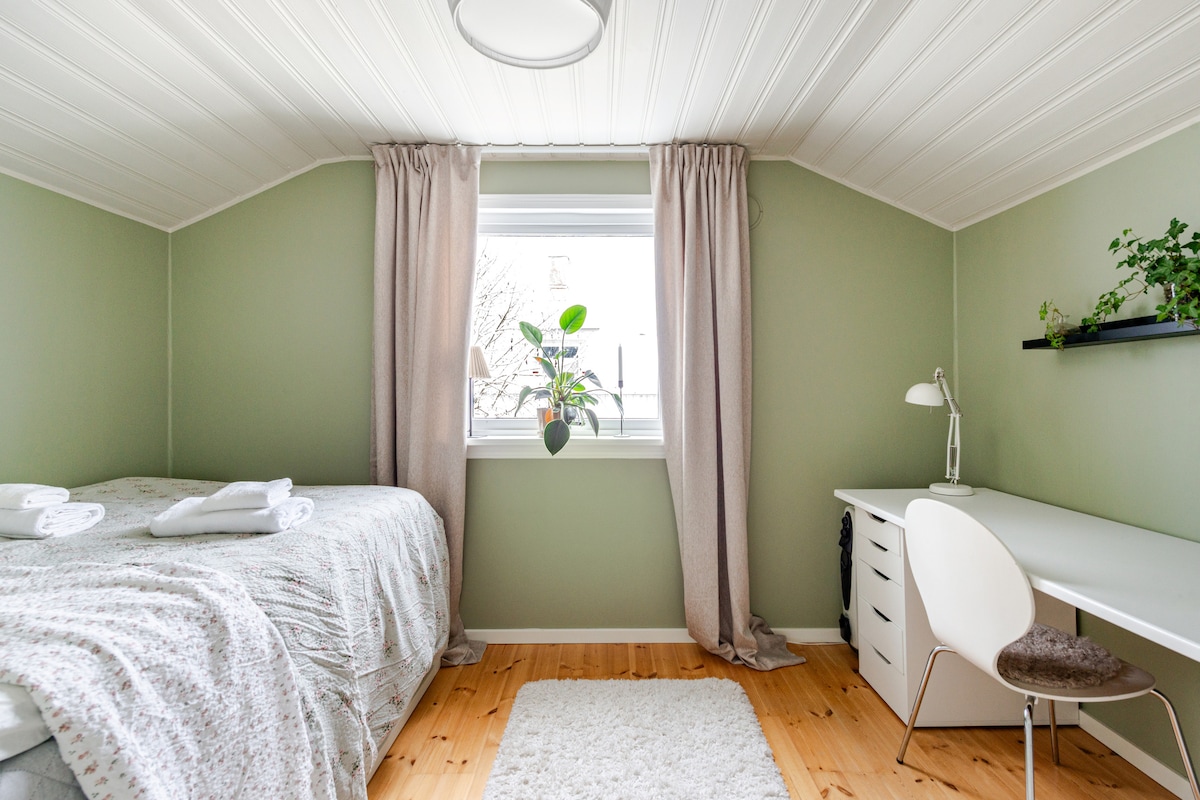 A cozy and spacious home in a peaceful, green neighborhood near the city center. Welcome to Villeberg, a unique turn-of-the-century property in Nacka. Frequent buses depart every 5–11 minutes to Slussen, the heart of Södermalm, with a travel time of approximately 15 minutes. On-site parking is available (first spot on the left). The house spans 140 m² and features three bedrooms, two bathrooms, a sauna, an open fireplace, a TV room, a laundry machine, and a fully equipped kitchen.