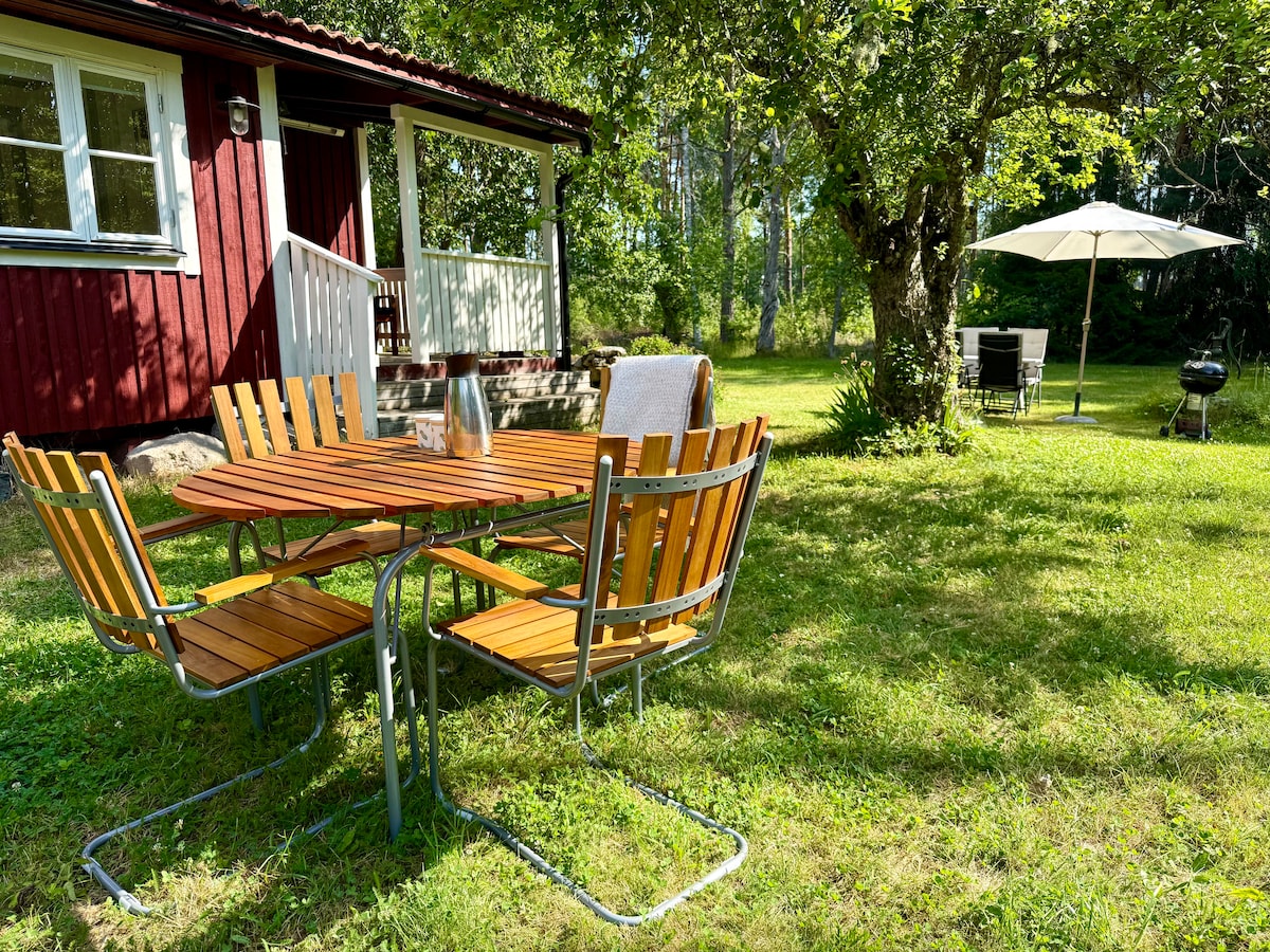 A guesthouse, with one room and a bathroom, renovated 2017 located on our farm. There is 3 beds, but the bedsofa is made for 2, and then we have 2 single beds. The guesthouse has a little, nice outdoor deck were you can BBQ or just relax with privacy! You will have close access to nature and the lake Hjälmaren, 6 kilometers. Small supermarket is just 800 meter away. Bikes to borrow if you need. Free fishing in the lake Hjälmaren.