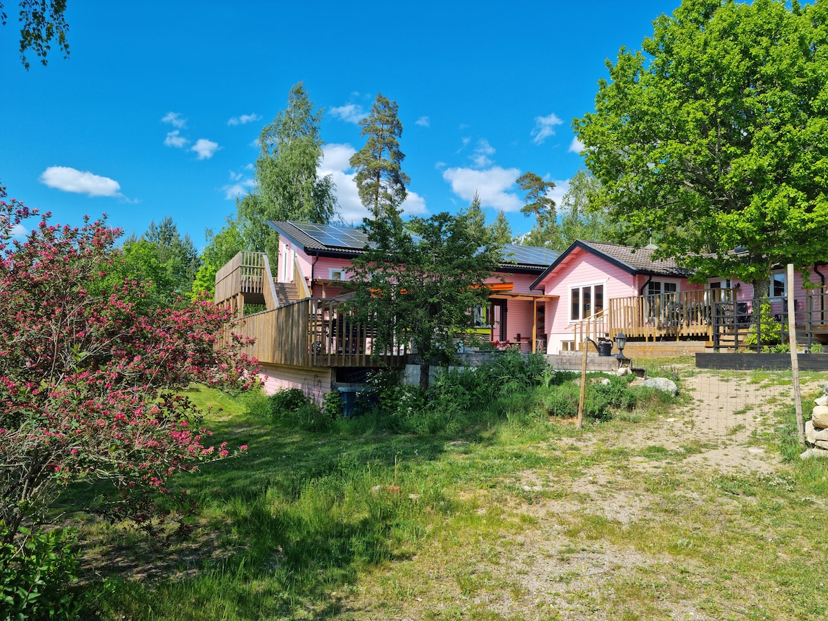 Our hideaway in Sund outside Trosa is peaceful and completely out of sight on a hill overlooking the lake Sillen. You will find three patios at different levels facing south. Below the house there is a place for swimming and fishing. The dock is shared with five other houses and there is also a swimming pool belonging to the association a walk away that are open during summertime. For the curious, look at Instagra m; PipershouseSweden. There are often dogs in the house so you will see dog beds.🌸