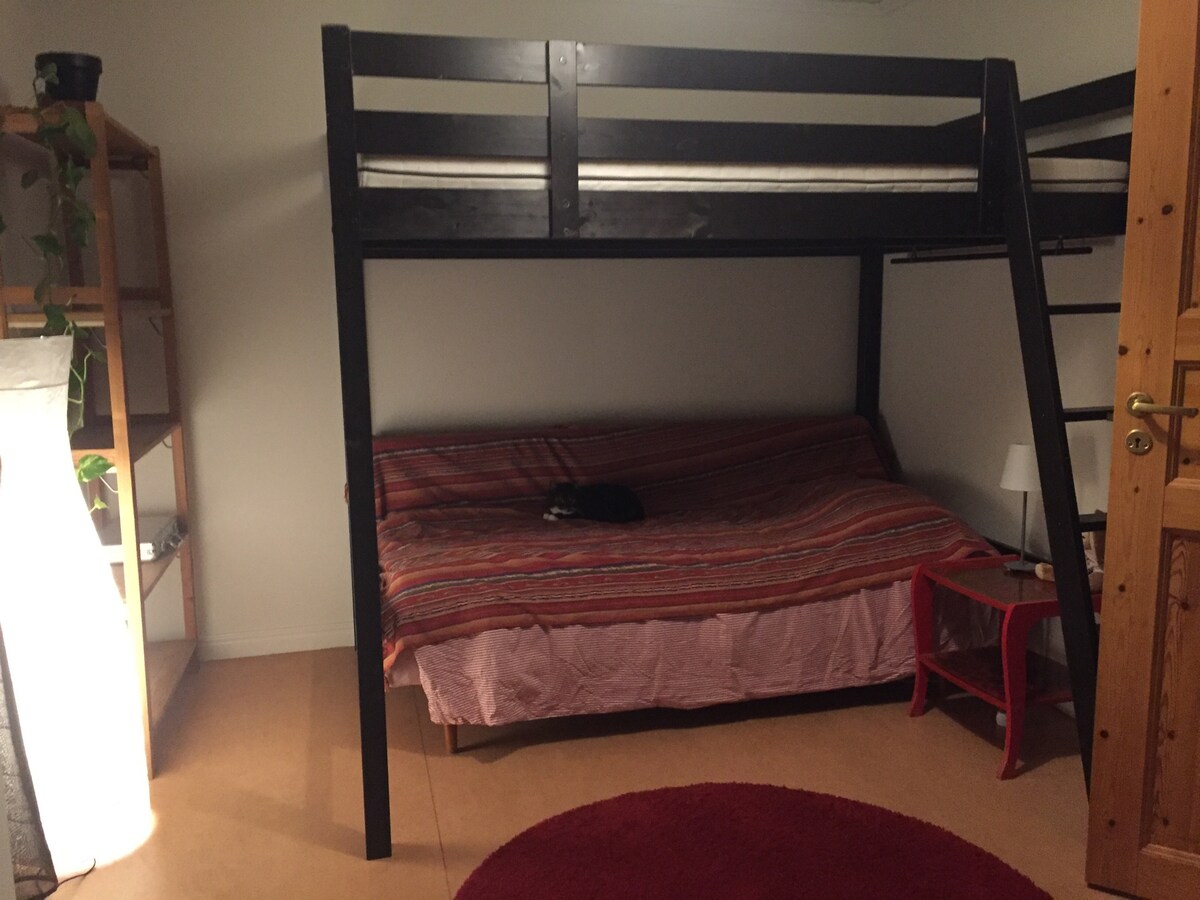 An idyllic, traditional swedish cottage on the countyside with modern facilities. Built during the 1800s, newly renovated. Inside plan as a studio apartment. Fully equipped kitchen, hammock and iron stove in the livingroom. Pool outside and climbing gym inside barn. Everyday safaris on the surrounding fields. Deers, mooses, foxes and more. Close to motorway, easy to find, although aside and quiet. 1 hour to Stockholm by car. Perfect for a couple/family holiday, or just passing trough.
