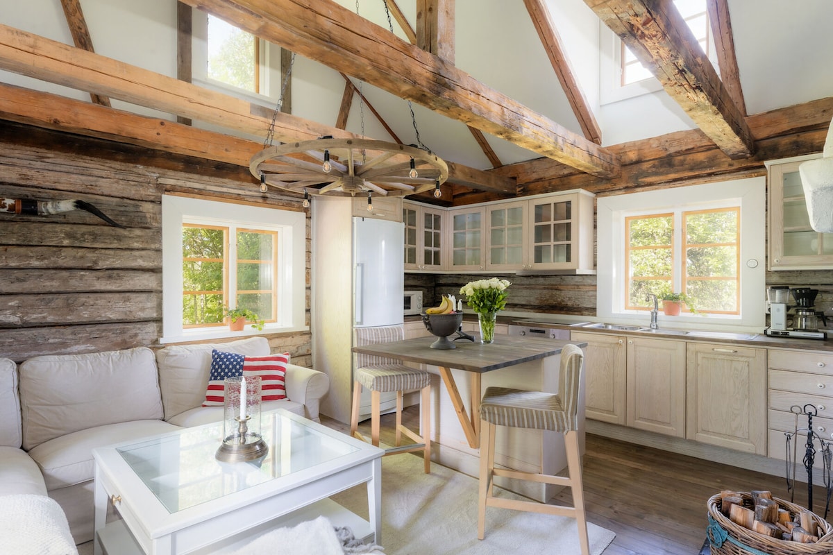 Kök och vardagsrum är sammanlänkade i en luftig planlösning med full takhöjd ända upp till nocken. Murad vedspis, perfekt för både värme och trivsel. På samma våningsplan finns ett litet sovrum med platsbyggd säng 80cm. Från vardagsrummet har man fri sikt upp mot det loftet där ytterligare ett sovrum ligger. Här finns en 180cm säng och möjlighet att ta fram en madrass 90cm. Badrum med badkar.. Koppla av med hela familjen i detta fridfulla boende.