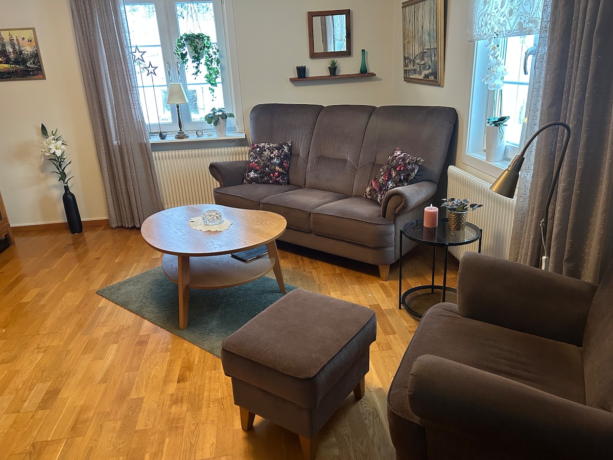 A peaceful quiet haven 40 minutes outside Stockholm. 5 bedrooms with a big gated front and back lot for the kids to run around in. Trampoline and swings. 2 fireplaces, 2 stories, 1.5 Bathrooms Close to the Mälaren, a 6 m in drive to a big kid friendly beach, Mariefred and Södertälje for shopping and activities.