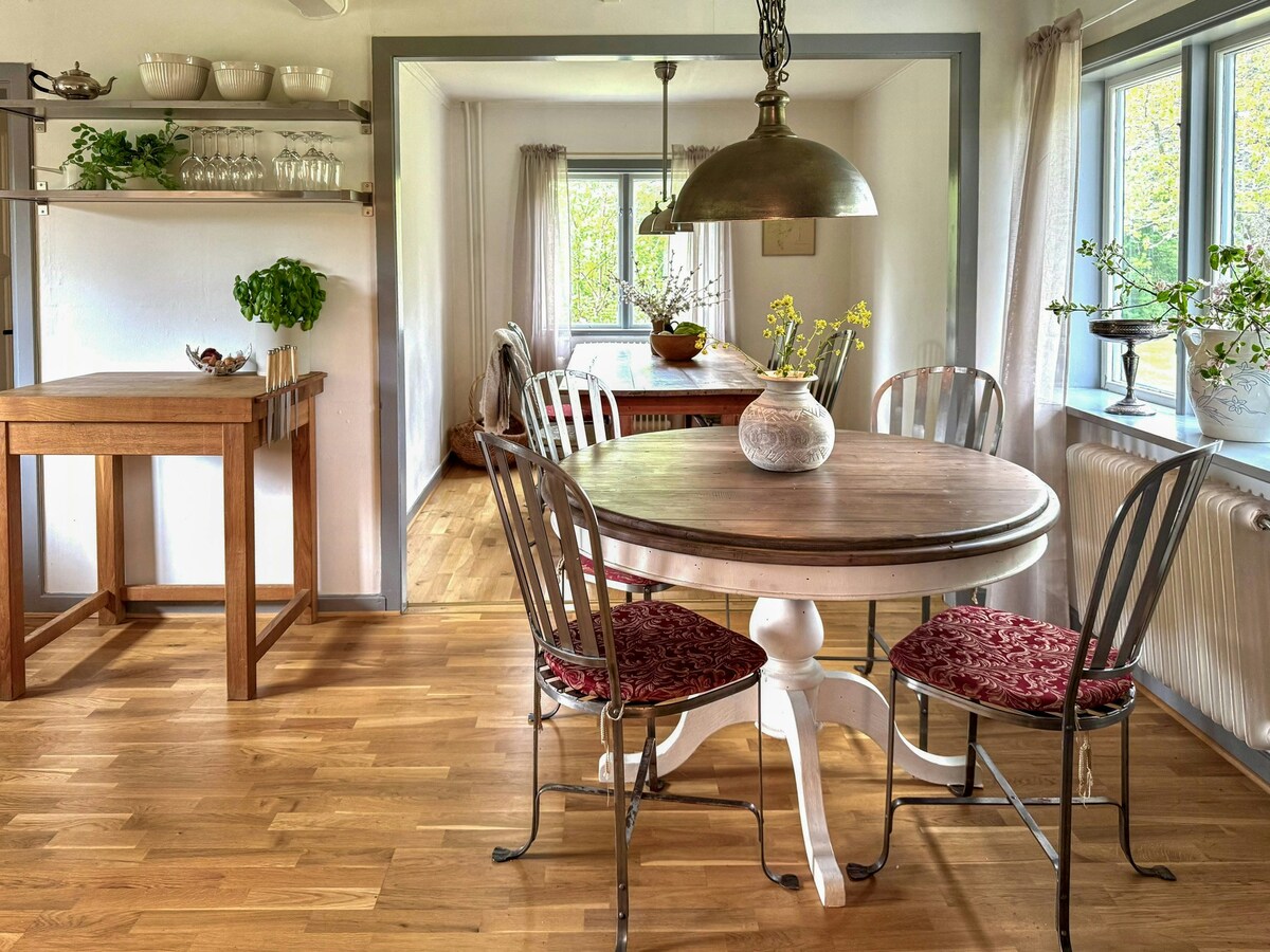 Relax in this unique and peaceful accommodation. Here, you are close to the sea, with a lovely 20-minute walk to several swimming spots. The Sörmlandsleden trail, section 56, passes by, and you are surrounded by fields and scenic paths and roads. You can cycle to Trosa’s picturesque town center and harbor in about 30 minutes or drive there in around 6 minutes. Here, you primarily enjoy the tranquility and beautiful surroundings in a house designed for vacation and relaxation.