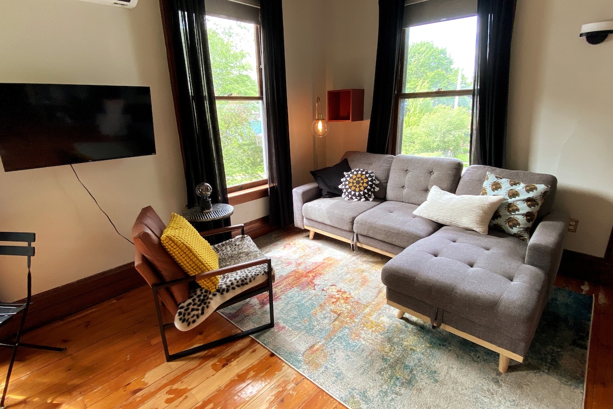 This contemporary 1-bedroom is located in an 1880 Victorian in the historic district of Auburn, NY. From here, you can walk to the Seward House Museum, the beautiful Seymour Library, the NYS Heritage Center, and the Harriet Tubman Home. A 5-minute walk to Wegmans grocery store, downtown shops, cafes, and great restaurants. Whether you're coming to enjoy the historic charm of Auburn, or using this as a base for exploring the Finger Lakes and all they have to offer, you won't be disappointed.