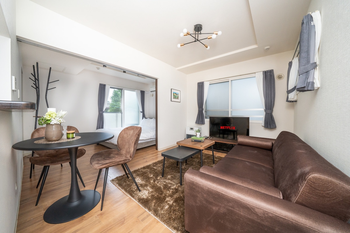 このお部屋は3階にありますが、エレベーターがないため階段をご利用頂きます。ご了承頂いた上でご予約お願いします🙏 🚇地下鉄 中島公園駅 徒歩9分 🚃市電(路面電車) 山鼻9条駅 徒歩4分 🚌新千歳空港直行バス停 徒歩10分 ※専用駐車場はございませんが、徒歩1〜5分以内に有料駐車場が複数ございます🚗 すすきのエリア 徒歩10〜15分 地下鉄すすきの駅 徒歩15分 狸小路 徒歩15分 すすきのエリア徒歩圏内というロケーションながら、アパート周辺は静かなエリア!女性にも安心✨ やわらかな日差しが差し込むリビングと、キングサイズのローベッドがある寝室でゆっくりリラックスタイム🪴 朝はゆったりコーヒーを飲みながら始まり、夜はやわらかな照明の中で映画や語らいを楽しむ… そんな、2人だけの穏やかな時間をお過ごしください。