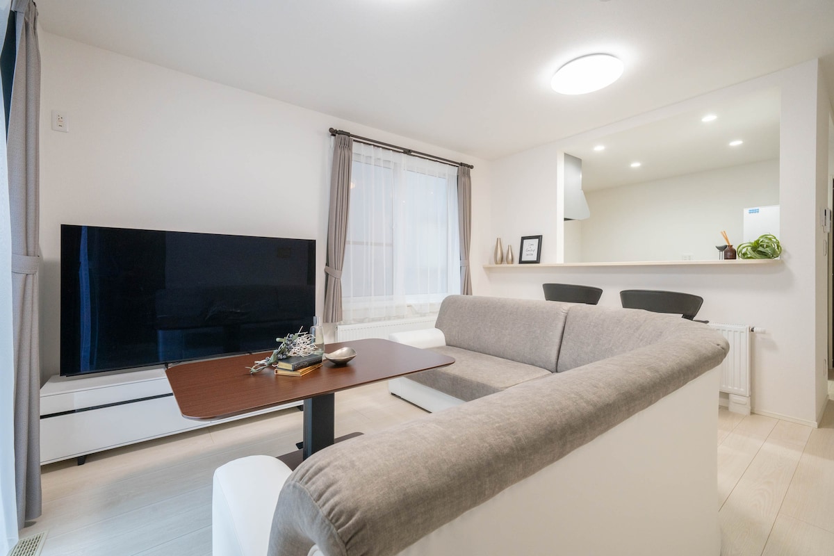 【1】ハイグレードホテル × 最大6名の一棟貸切 リビングルームにはとても広いL字型のソファがあり、ゆったりとくつろぐことができます。 大人数での団らんやリラックスタイムに最適な空間です。 広々としたリビングで、家族や友人と楽しいひとときをお過ごしください。 落ち着いた雰囲気の中で、忙しい旅の疲れを癒すことができます。 【2】最寄りJR桑園駅 東口 徒歩11分 × 札幌駅 車7分 私たちのホテルは、札幌駅やすすきの、大通公園などのすぐそば。 レジャー・観光に最高のロケーションです。 中心地に非常に近く、家族向けホテルとしては希少です。 駐車場も1台までご利用可能です。 【3】圧巻の室内設備 2階と1階にトイレは1つずつあるため、夜と朝の時間も混み合わず快適。 テレビでYoutubeやNETFLIXも視聴可能。 広々としたキッチンは、最新の調理器具や家電が揃っており、自炊を楽しむことができます。 リビングや各寝室には冷暖両用の強力なエアコンを備えております。 冬はパネルヒーターがついているのでお部屋の中は暖かくお過ごしいただけます。