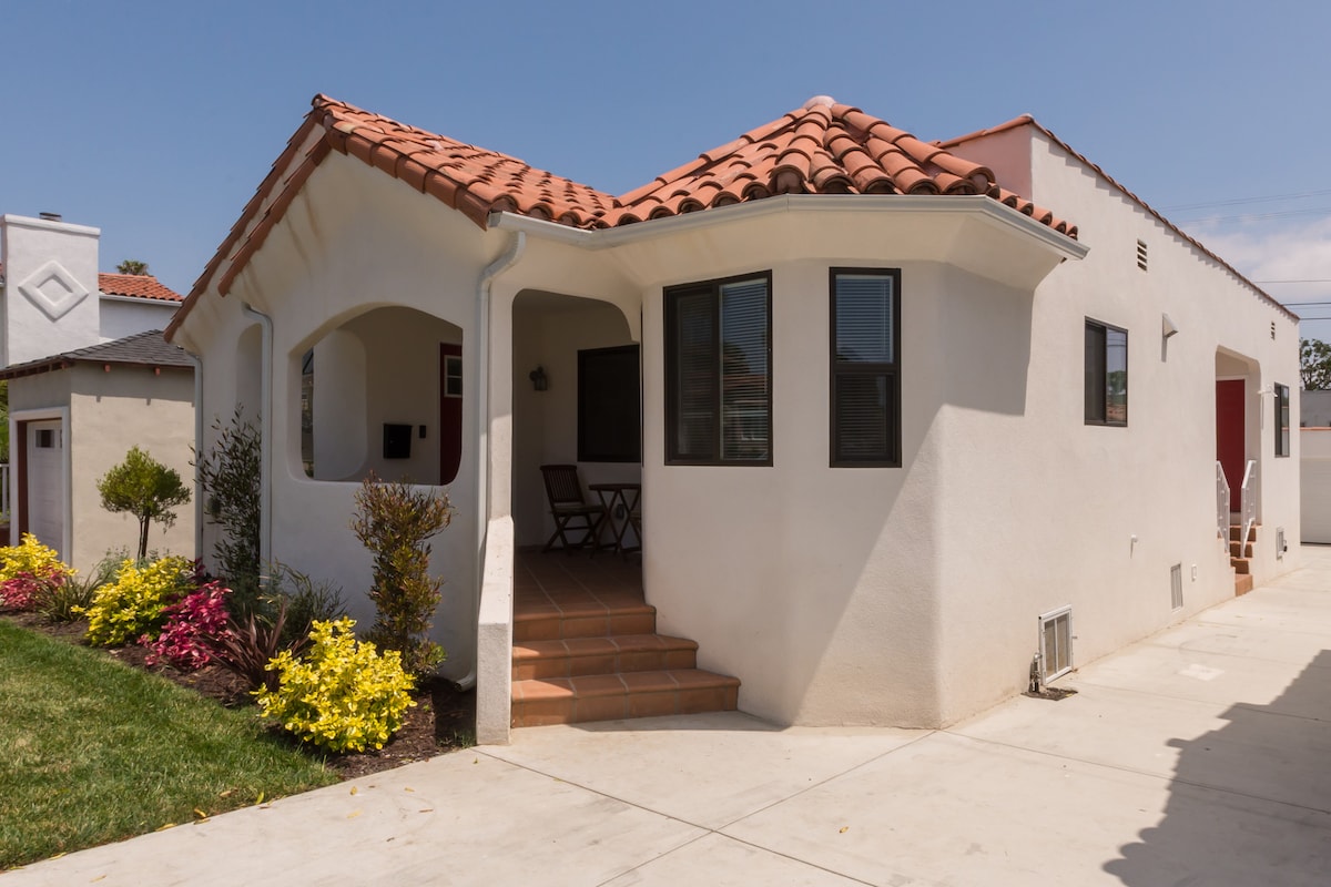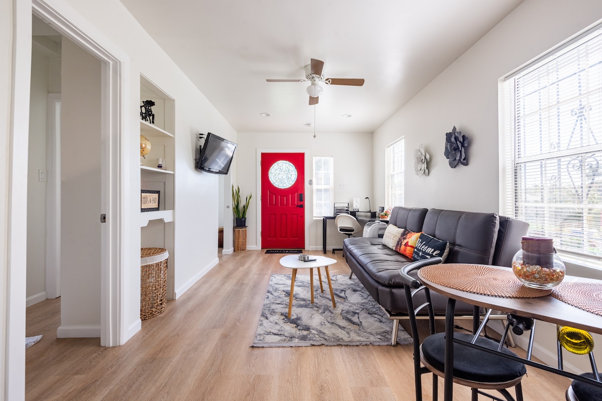Keep it simple at this cozy - centrally-located place. Contemporary 1 Bedroom House with outside seating to enjoy the evening breeze. Laundry Room and Refrigerator. Full functional Kitchen with Stove,Microwave and Coffee Maker . Convertible couch with USB charger. Bathroom -Shower& Bathtub . Bedroom with queen size Bed and queen size Air mattress. 42 “ TV Wi-Fi -Internet . Separate Driveway. Close to SoFi Stadium, Kia-Form , Beaches, LAX, Staple Center. Self check -in digital door lock .