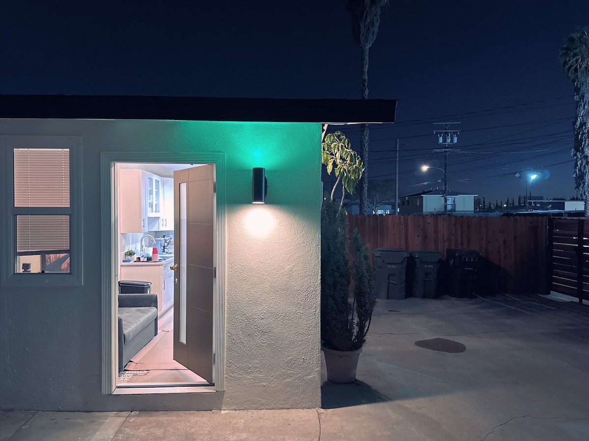 A restful hideaway. safe, charming, 1 newly renovated 1 bedroom Guest House in the residential, Kentwood area of Westchester. Simple street parking. Walking distance to LMU, Supermarkets, and neighborhood amenities. 10-minute drive to LAX, Playa Del Rey Beach, and SOFI. Drive north on coast to MDR, Venice, Malibu. Open plan Living/Kitchen with all amenities. The living space opens onto private outdoor sitting area. Outdoor view from bedrm. Shared eating area for 6/ barbecue.