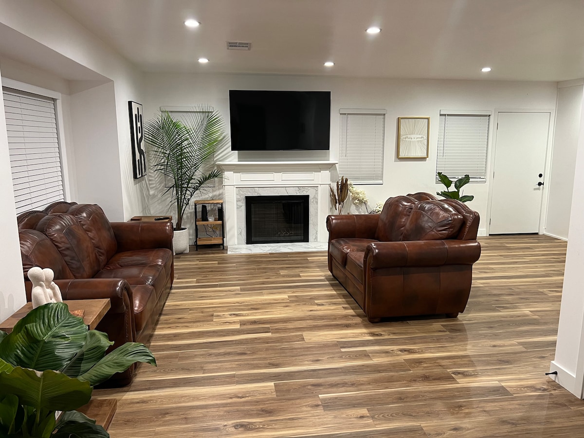 Newly renovated modern farmhouse with a spacious private backyard, lush landscaping, lemon trees, and a furnished gazebo ideal for relaxing before or after concerts, games, and events. This art-inspired LA-vibe home is centrally located in a quiet Southern California residential neighborhood. Just 10 mins to LAX & SoFi/The Forum, 18 mins to DTLA, 15 mins to beaches, 25 mins to Universal Studios, 30 mins to Disneyland. Fully furnished with equipped kitchen, smart TV, and hotel-grade beds.