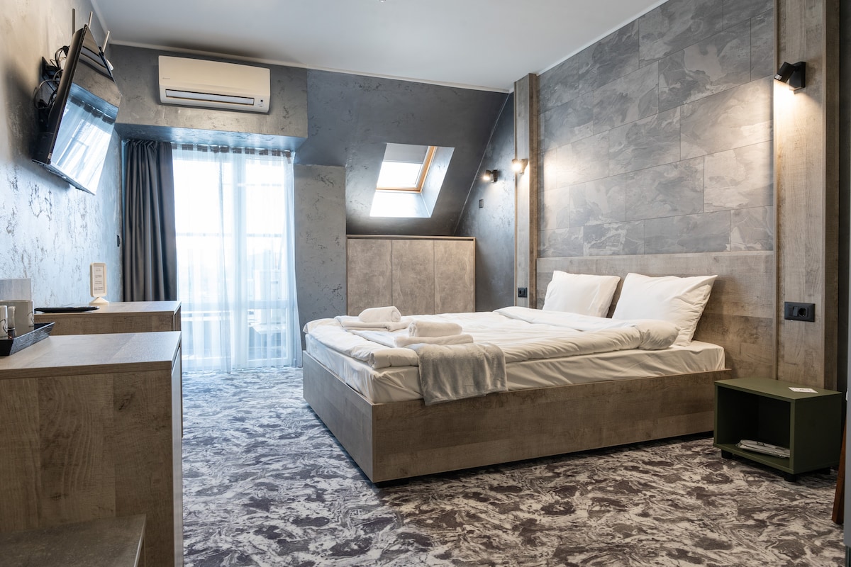 Enjoy a stylish stay at The New Via Serdika – a 4-star boutique hotel in Sofia. Each room features a balcony, smart TV, air conditioning, minibar, luxury bathroom, premium toiletries, and more. Guests enjoy a buffet breakfast, fitness center, lobby bar, conference hall, parking, and free Wi-Fi. Relax in thoughtfully designed rooms with comfort, style, and premium amenities tailored for a perfect stay.